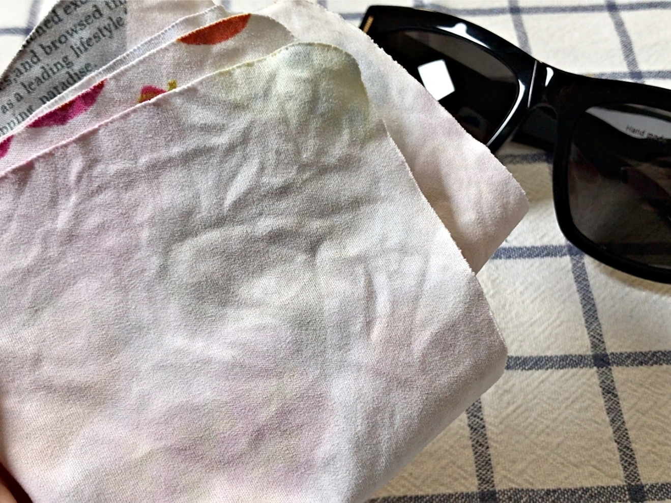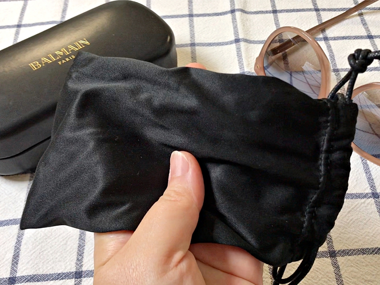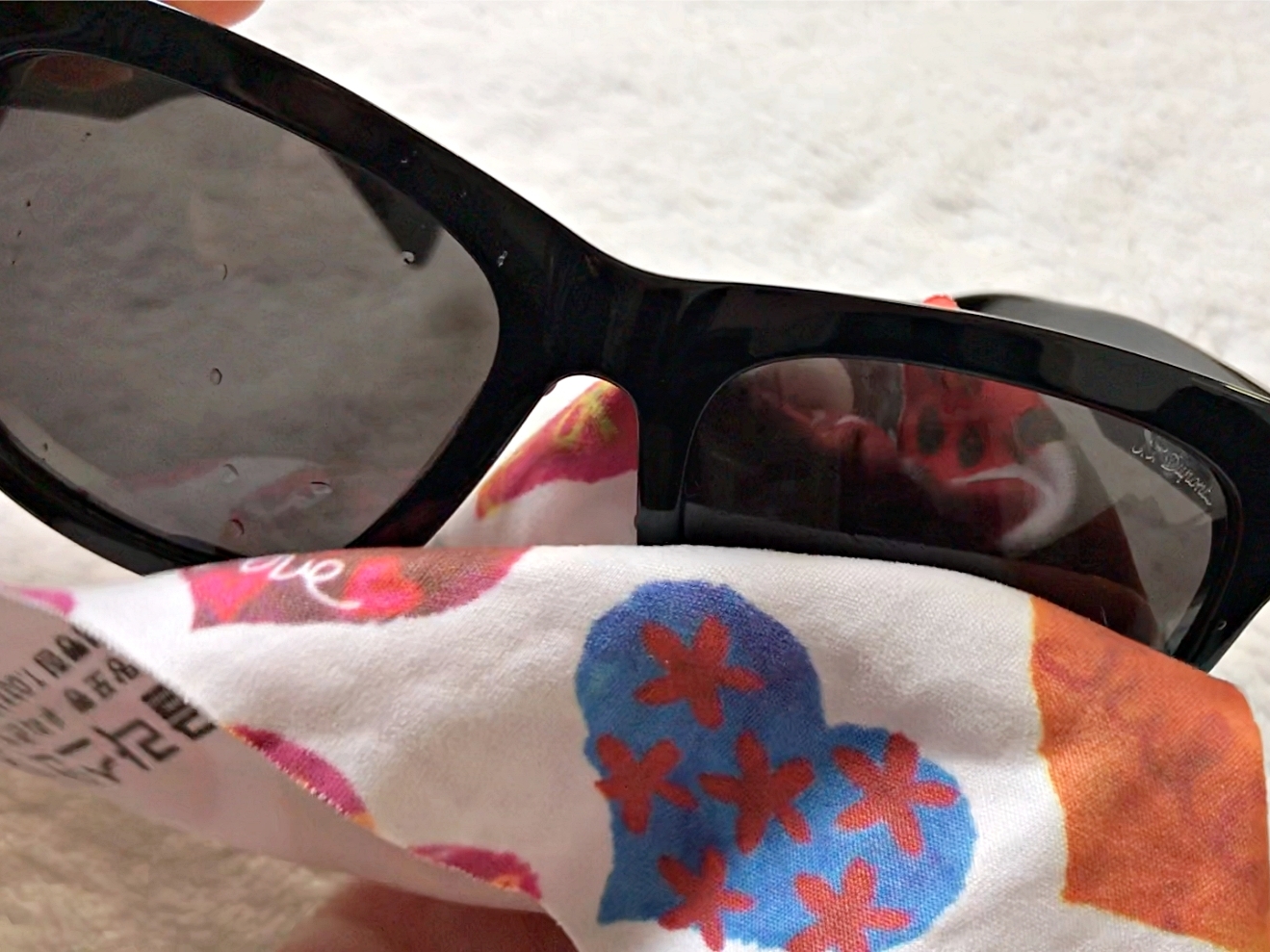 극세사천으로 선글라스를 감싸고