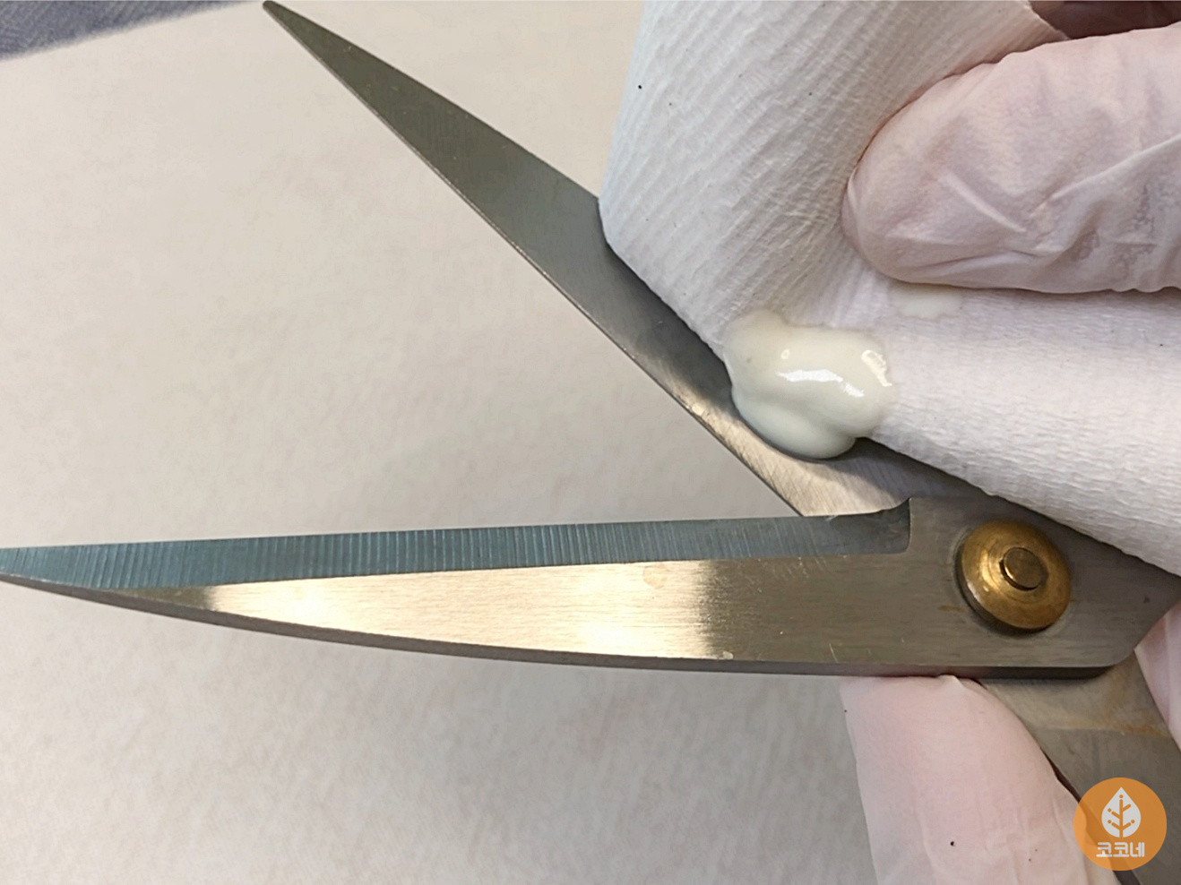 녹이 슬거나 끈끈이가 묻은 가위날(칼날)을