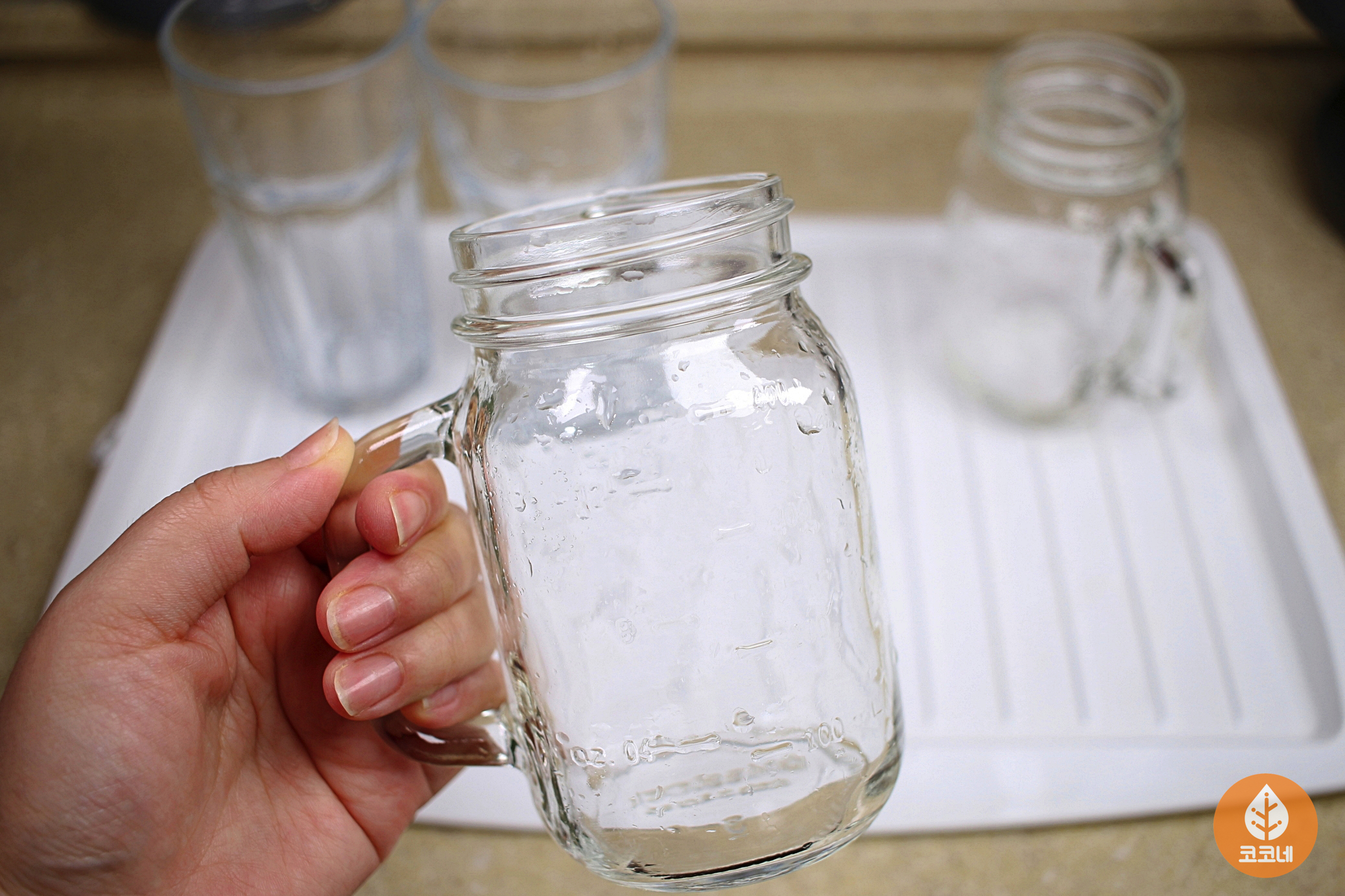 식초물에서 꺼낸 컵은