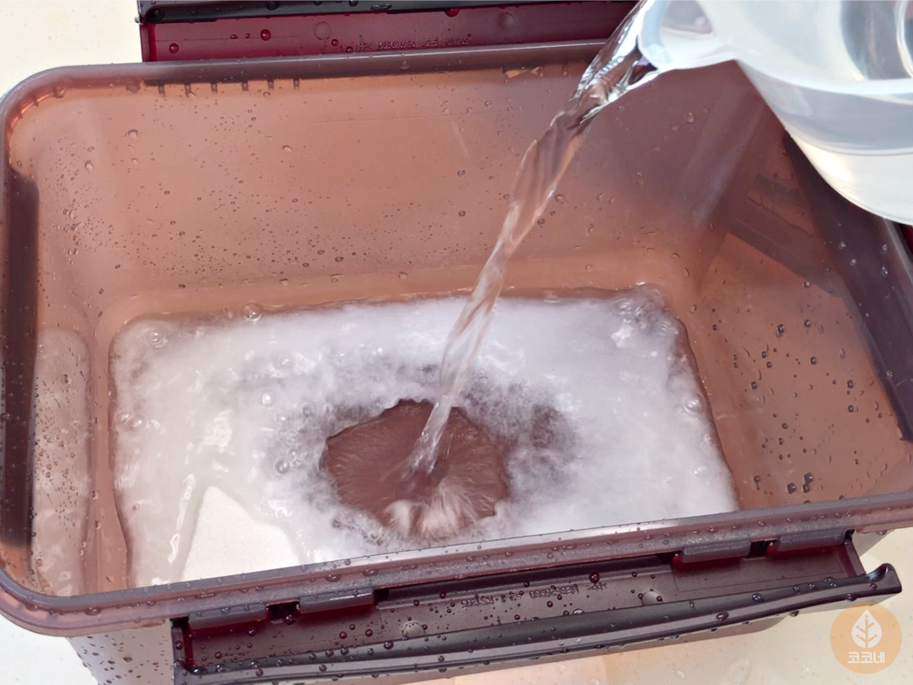 김치통에 설탕물을 채워주세요.