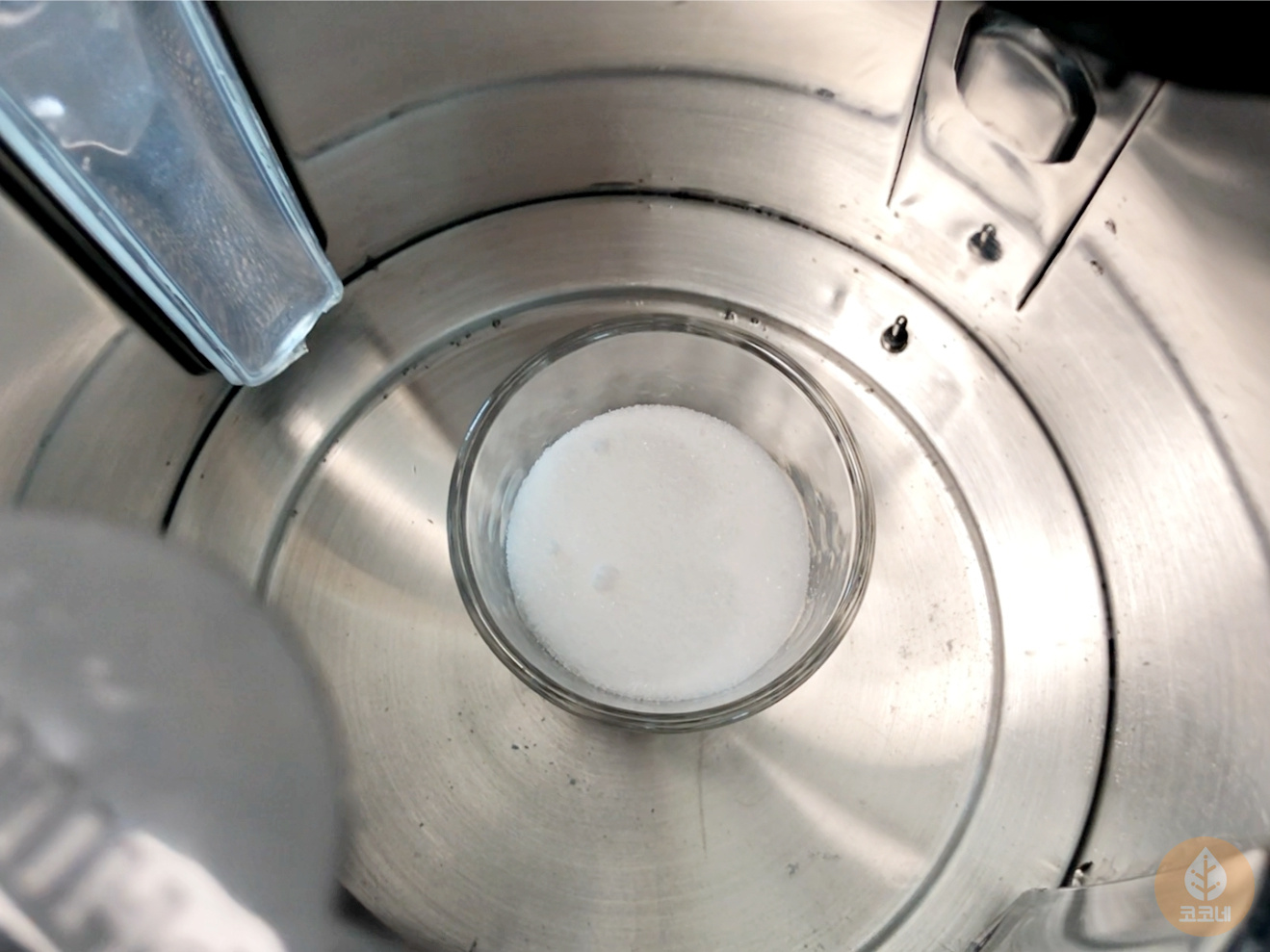 전기포트 안에 설탕을 담은 종지를 넣고