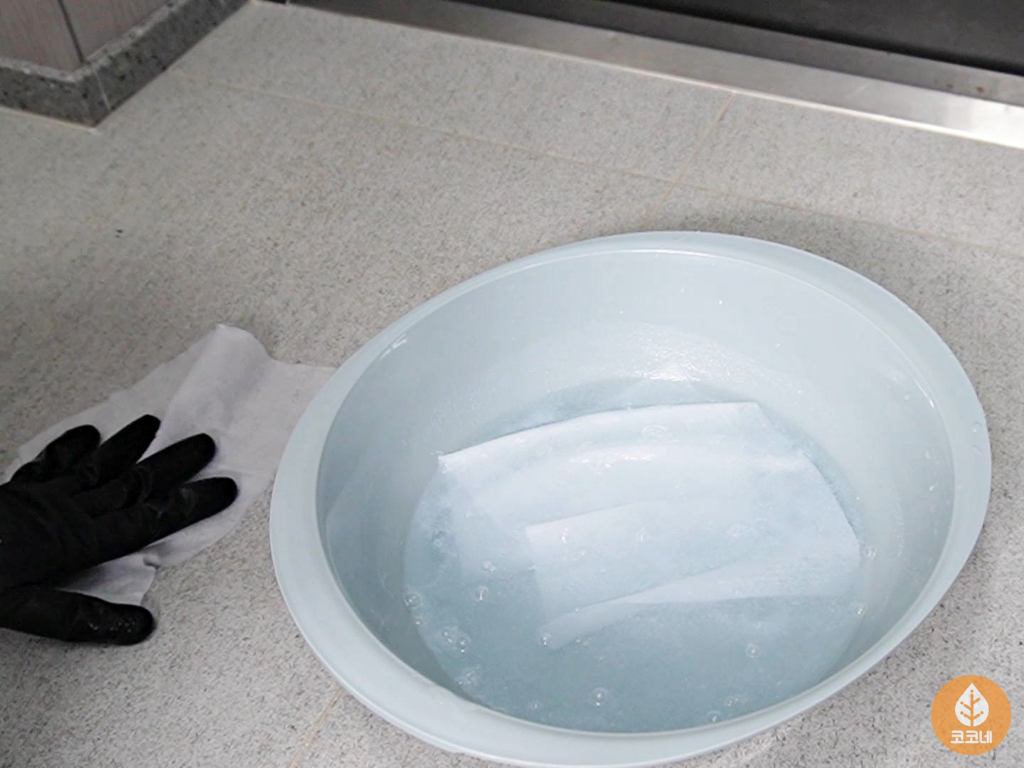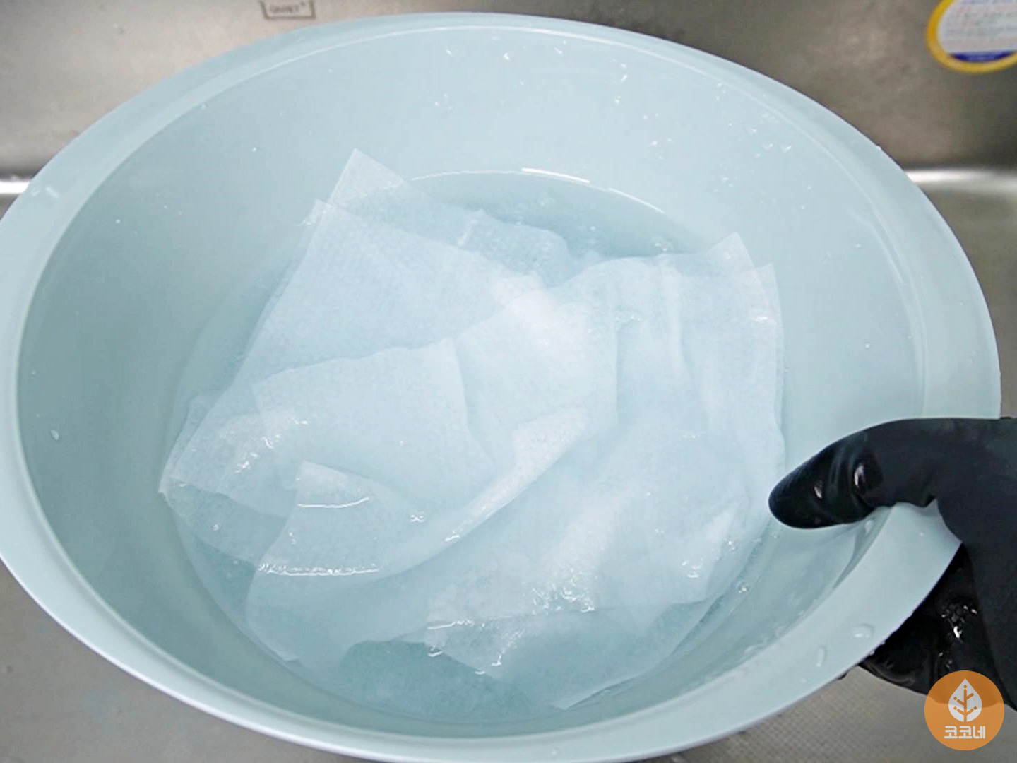 그리고 물티슈를 3장 담가주세요.