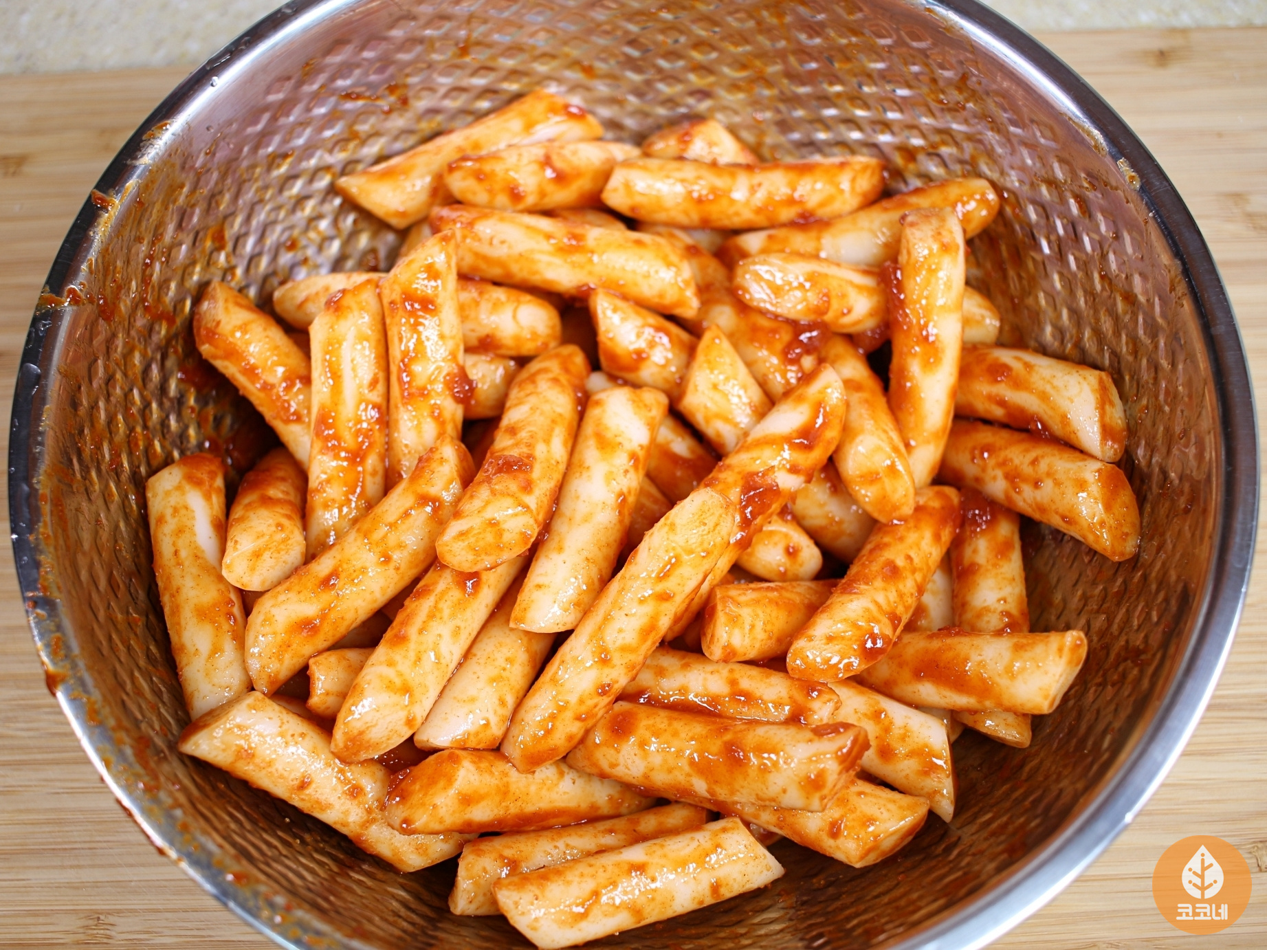 떡볶이떡에 양념장 반을 넣고 버무려 주세요.