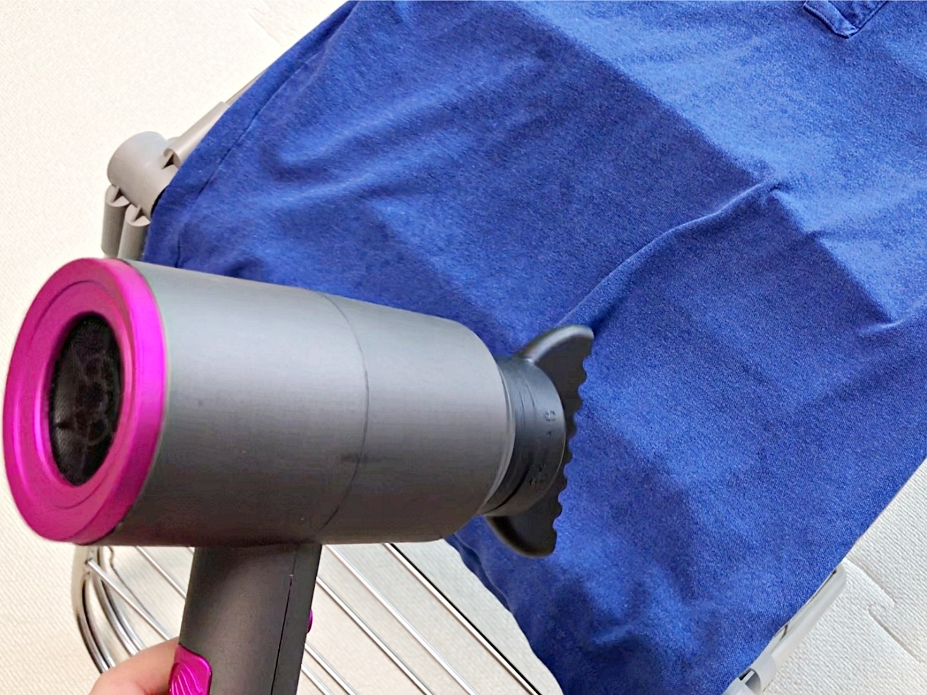 드라이기로 바람을 쐬어주면서