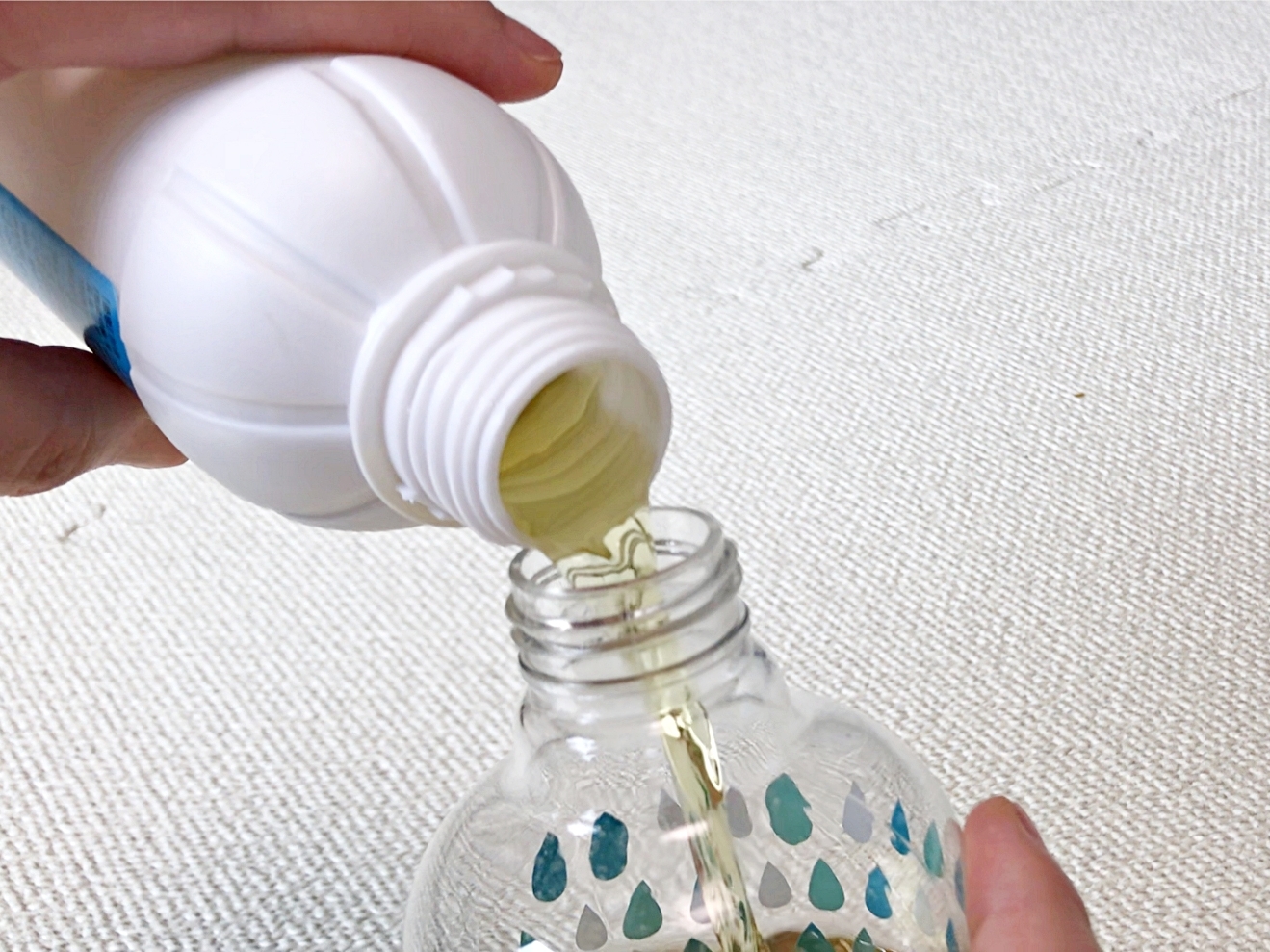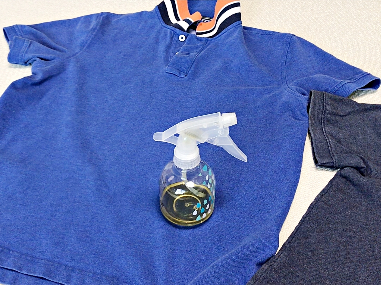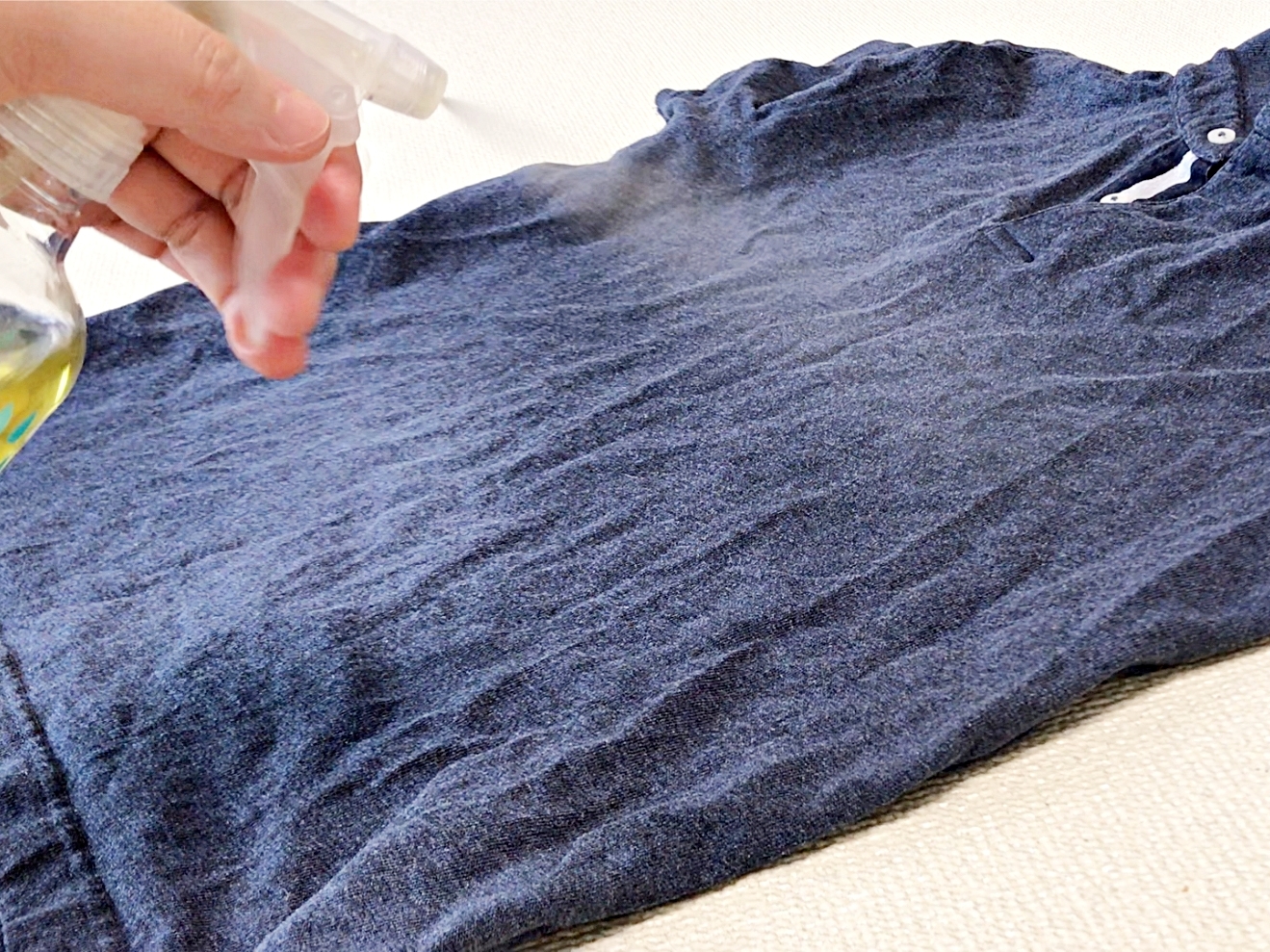이 액체를 냄새가 밴 옷에 골고루 뿌려요.