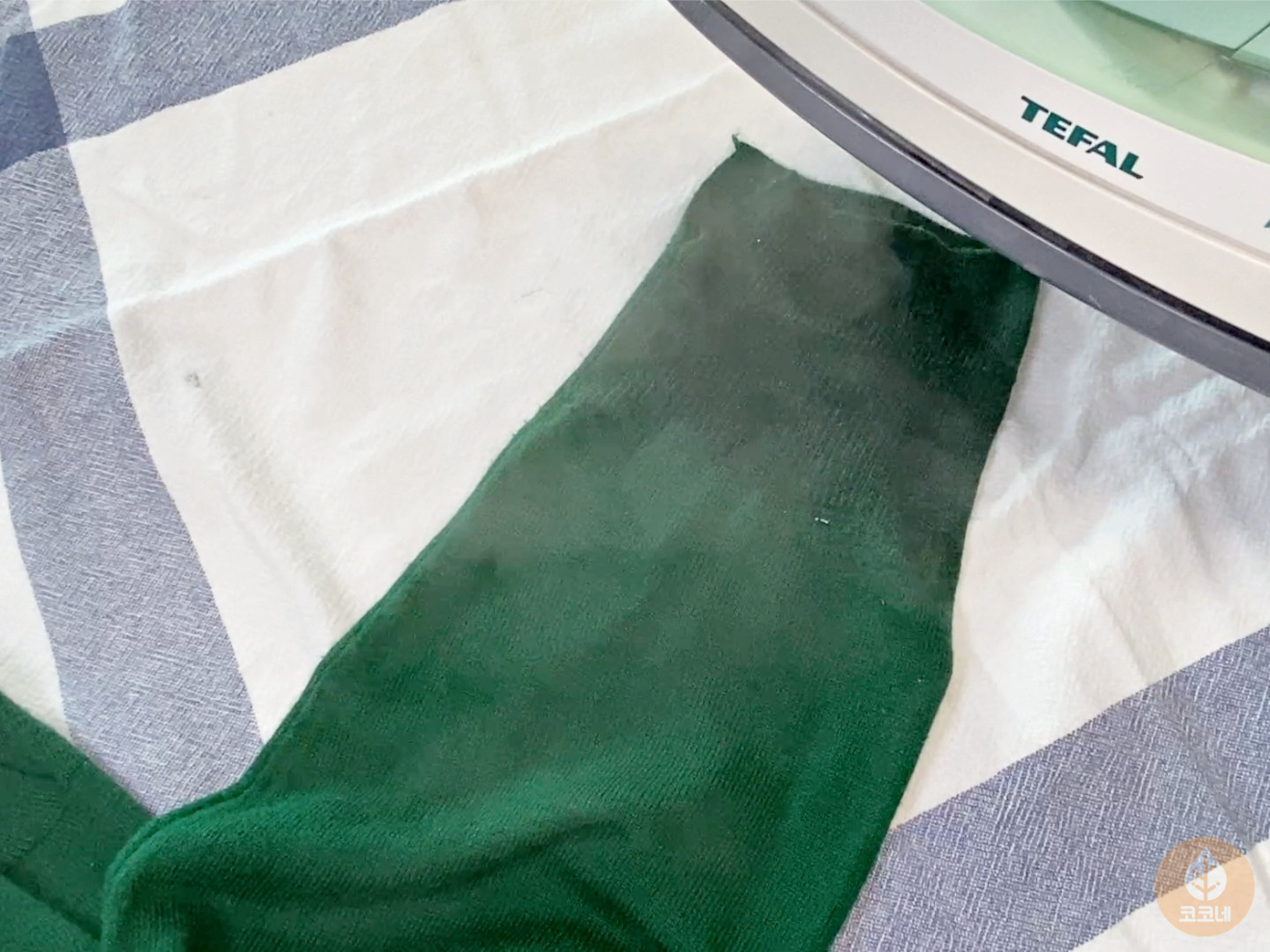 풀물이 니트에 충분히 스며들면 스팀다리미 출동~!