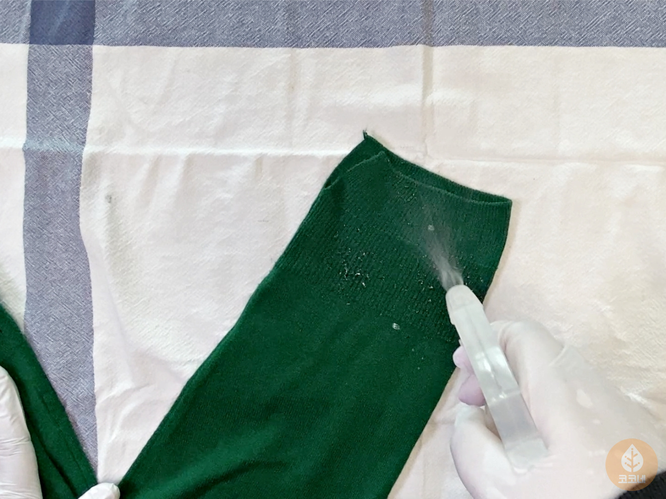 마른 수건 위에 니트의 늘어난 부분을 펼쳐놓고