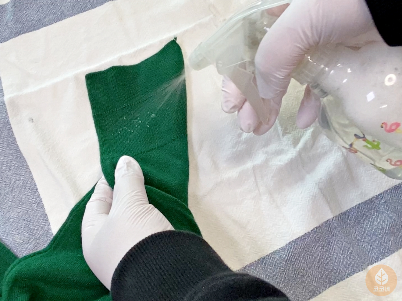 풀물이 니트에 충분히 스며들면 스팀다리미 출동~!