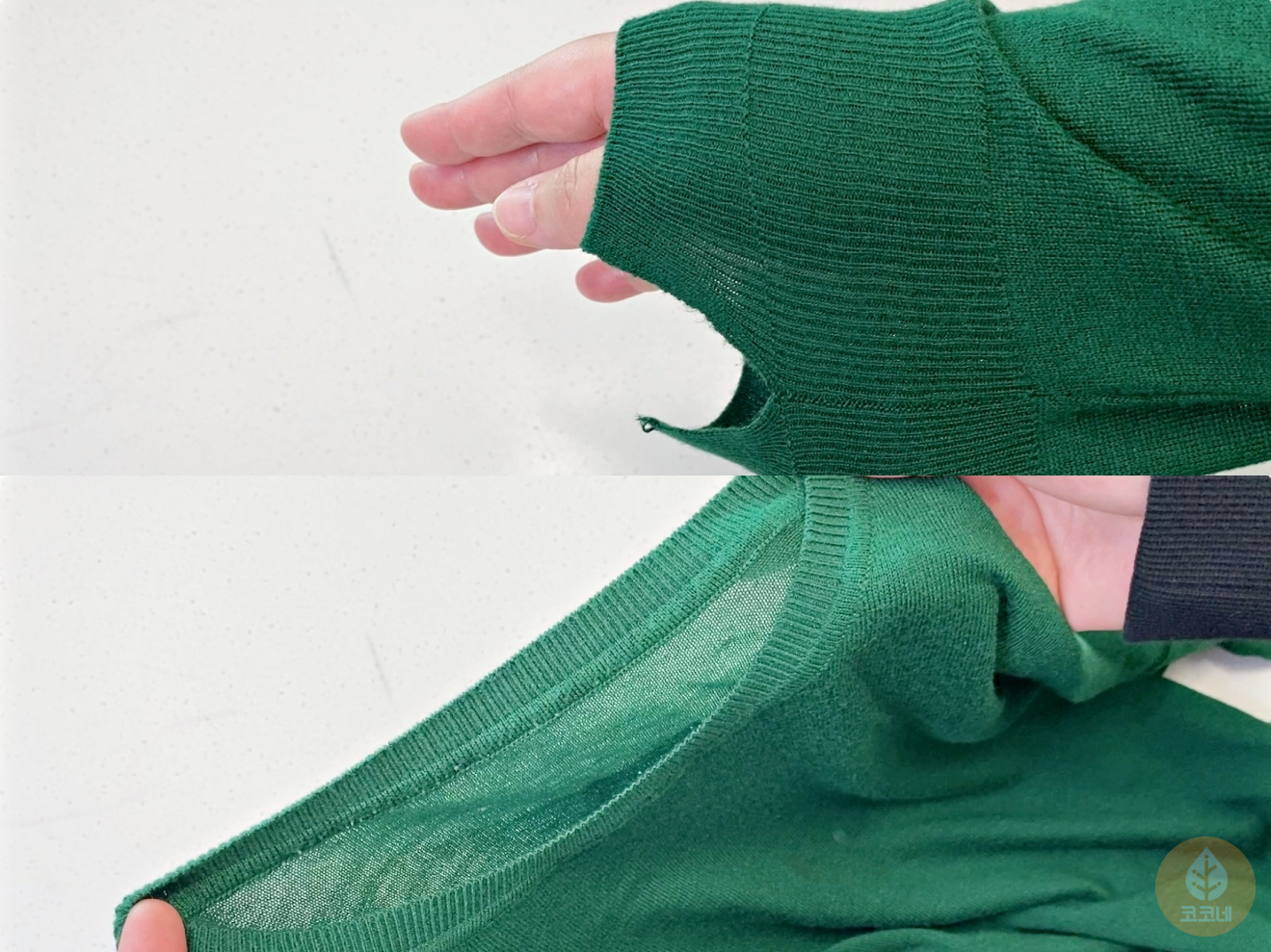 유난히 잘 늘어나는 어깨나 소매, 목 부분 떄문에