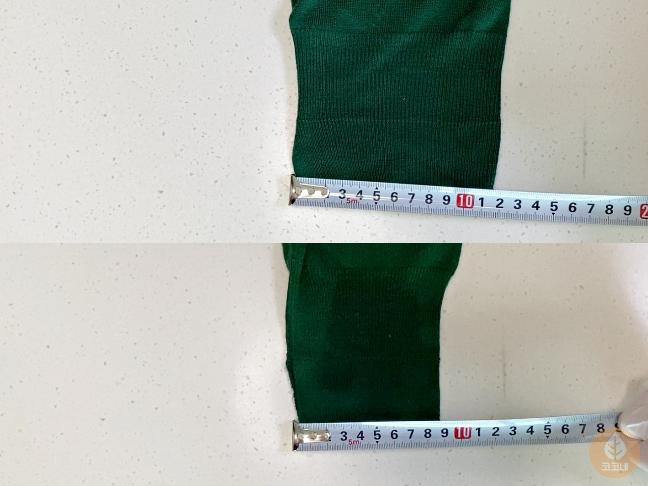 스팀 분사하고 풀을 먹인 뒤 9cm가 안되게 줄었어요.