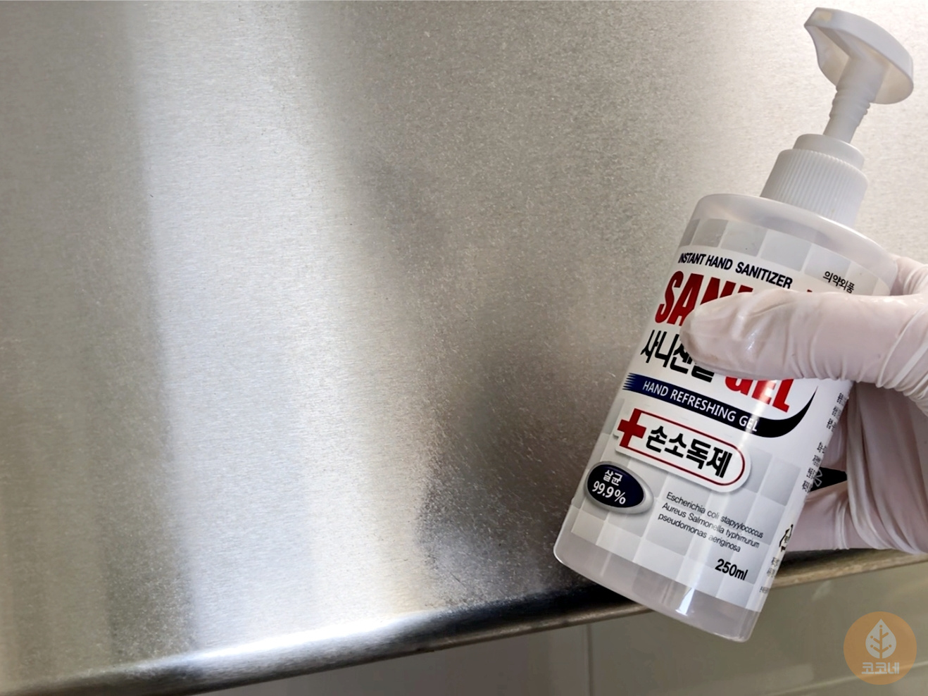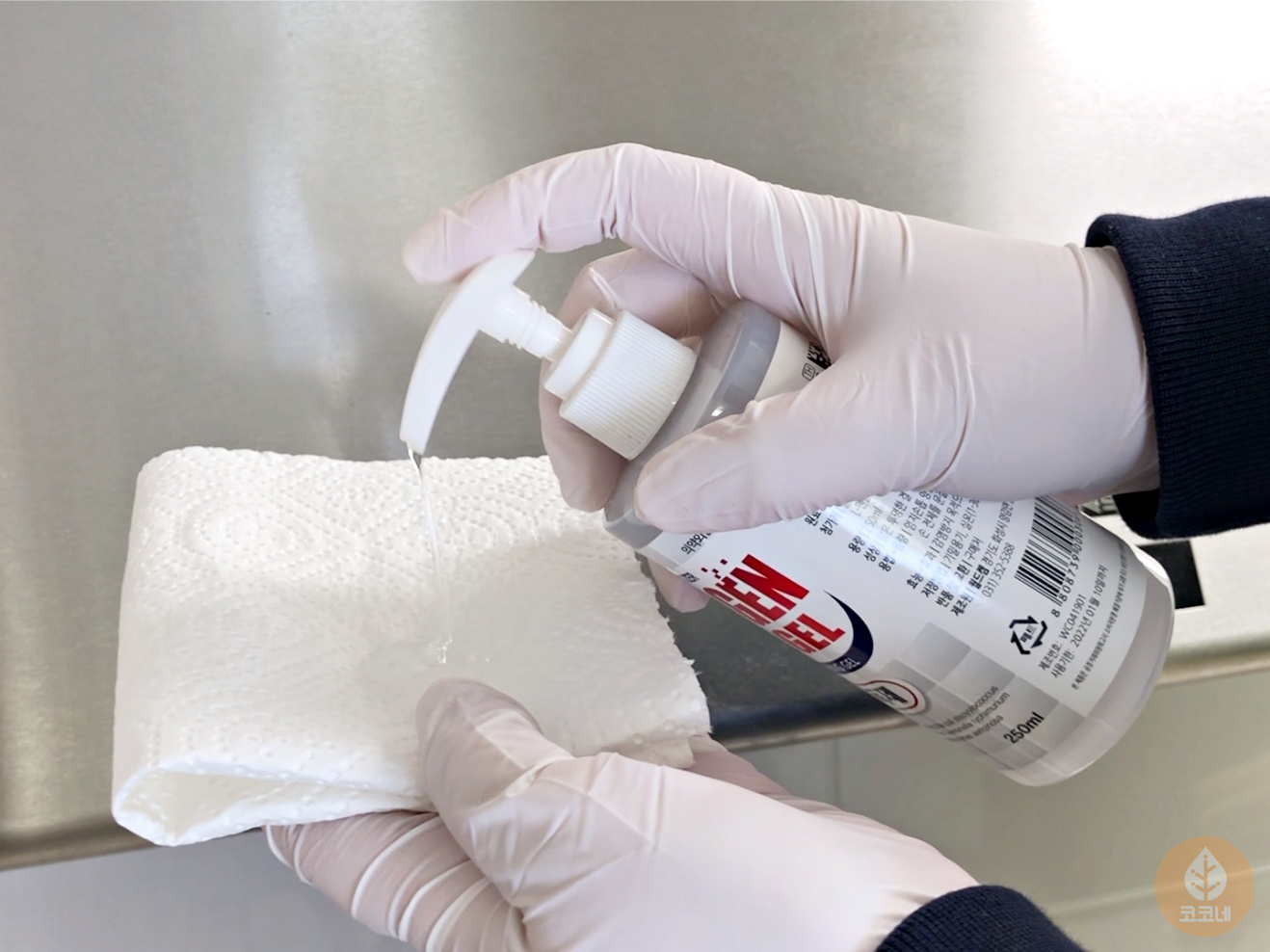 손소독제를 키친타월에 묻혀서 닦기만 하면 돼요.