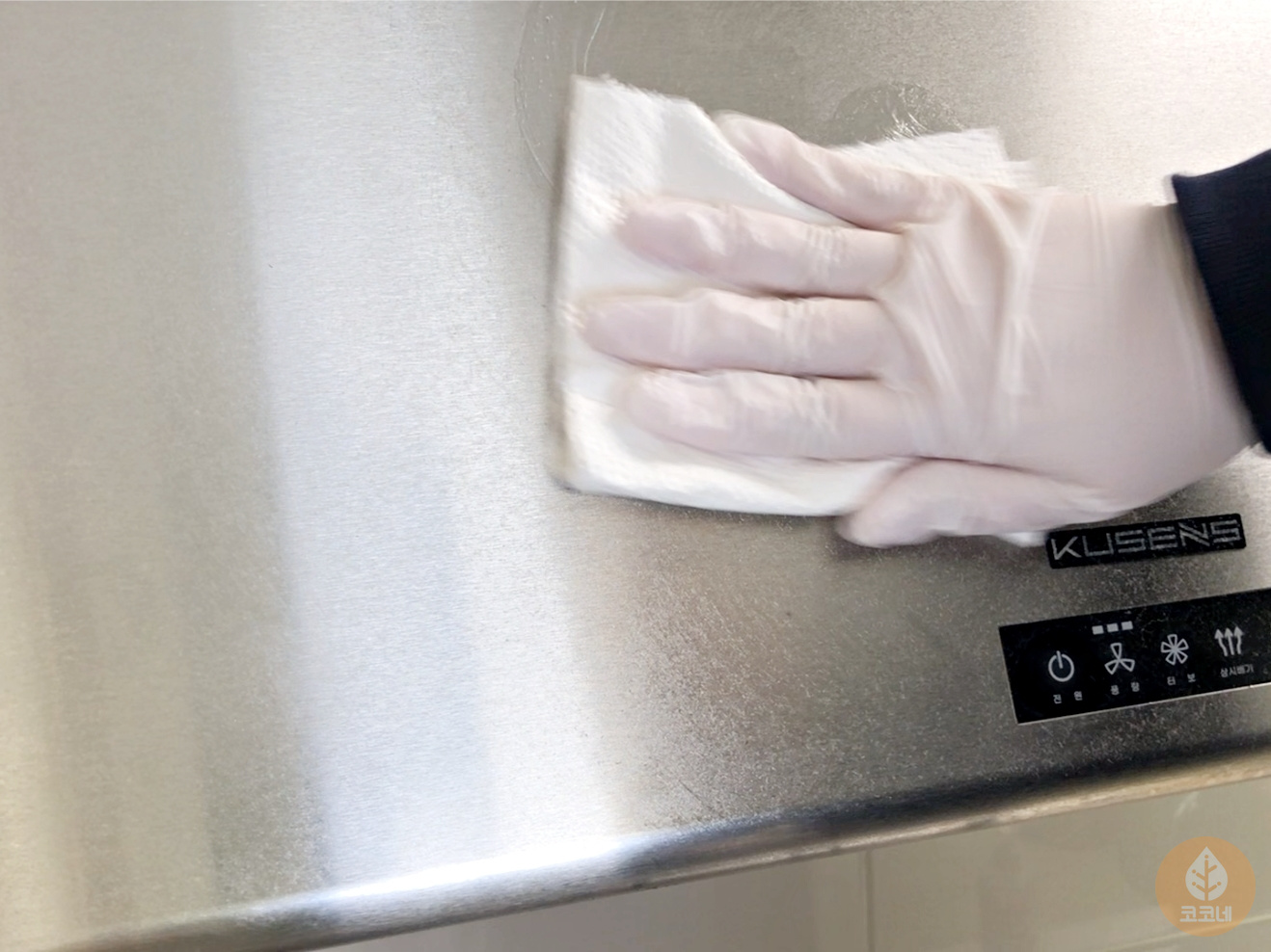 손소독제를 키친타월에 묻혀서 닦기만 하면 돼요.