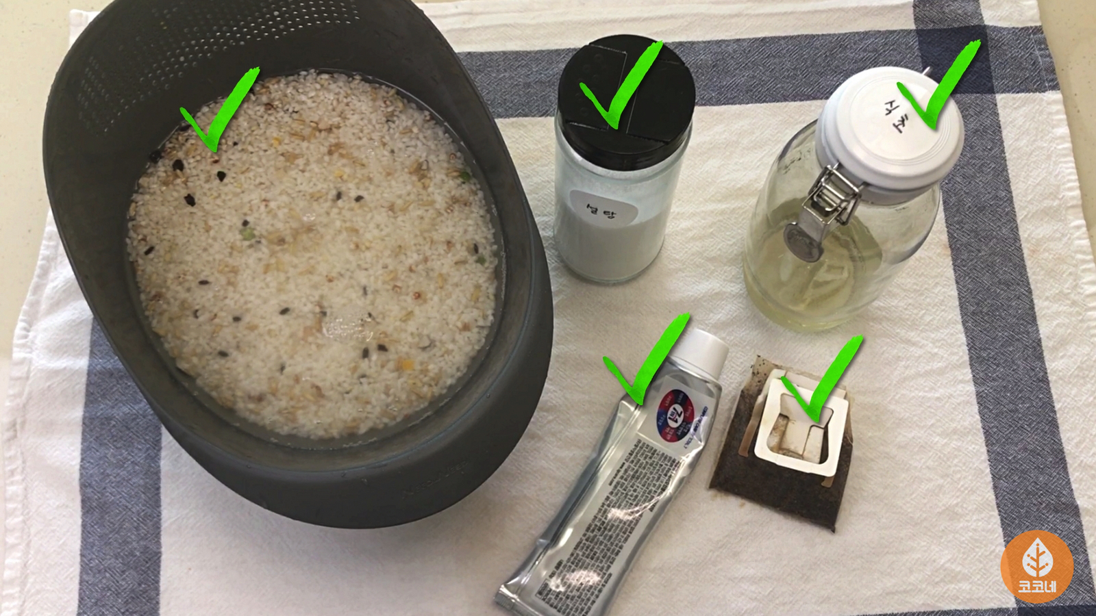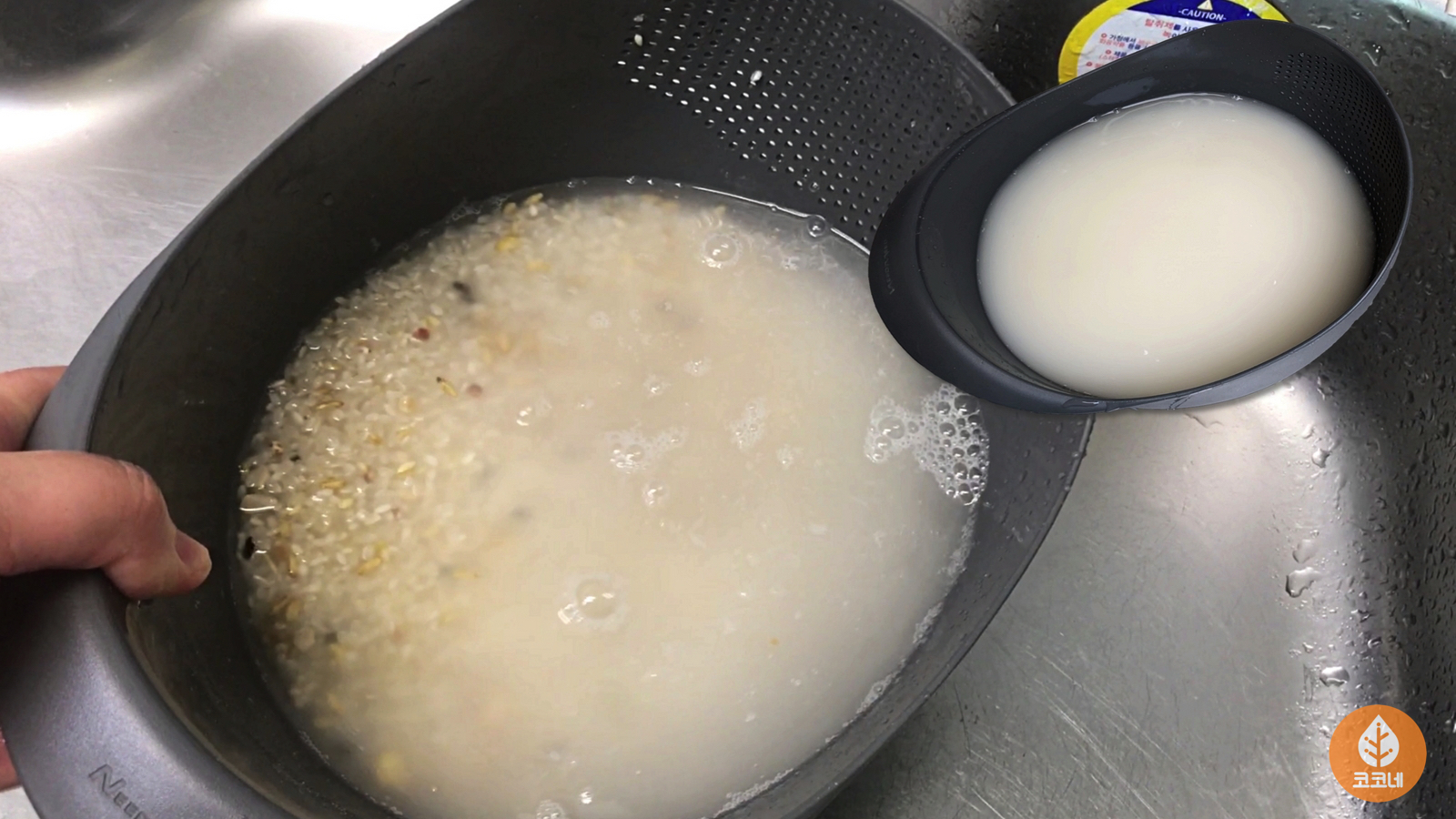쌀을 씻을 때 나오는 쌀뜨물을 모아서