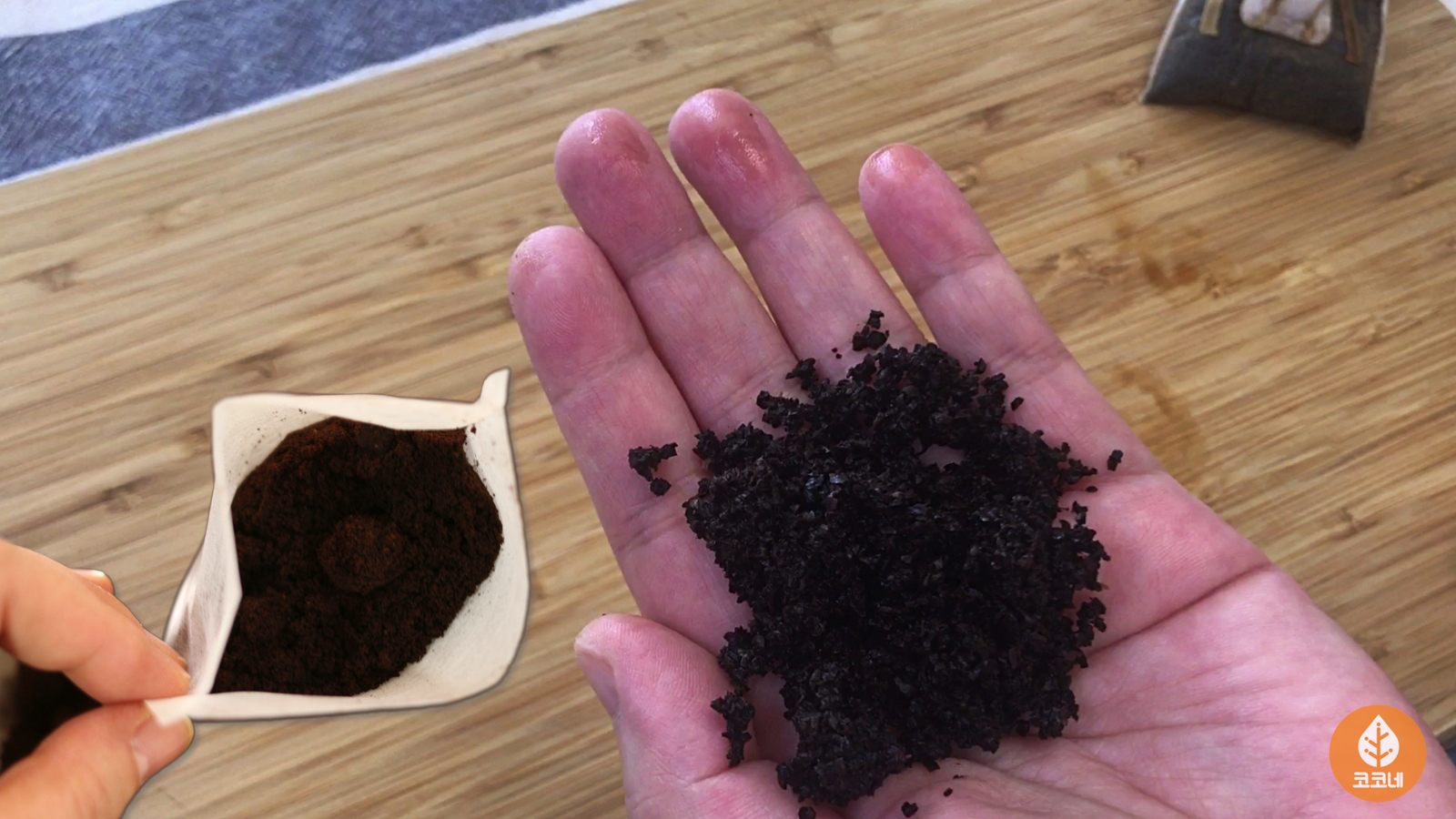 커피를 마실 때 따로 모아둔 커피찌꺼기를