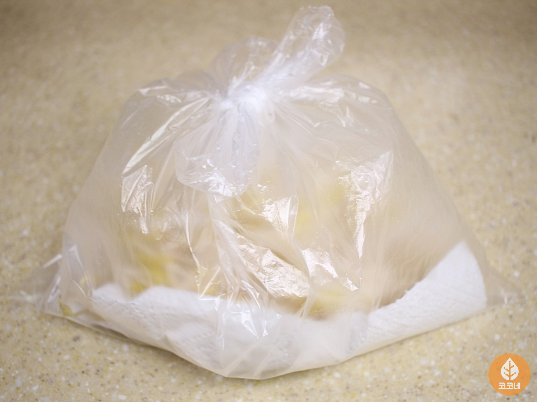 일회용 비닐에 키친타월을 깔고