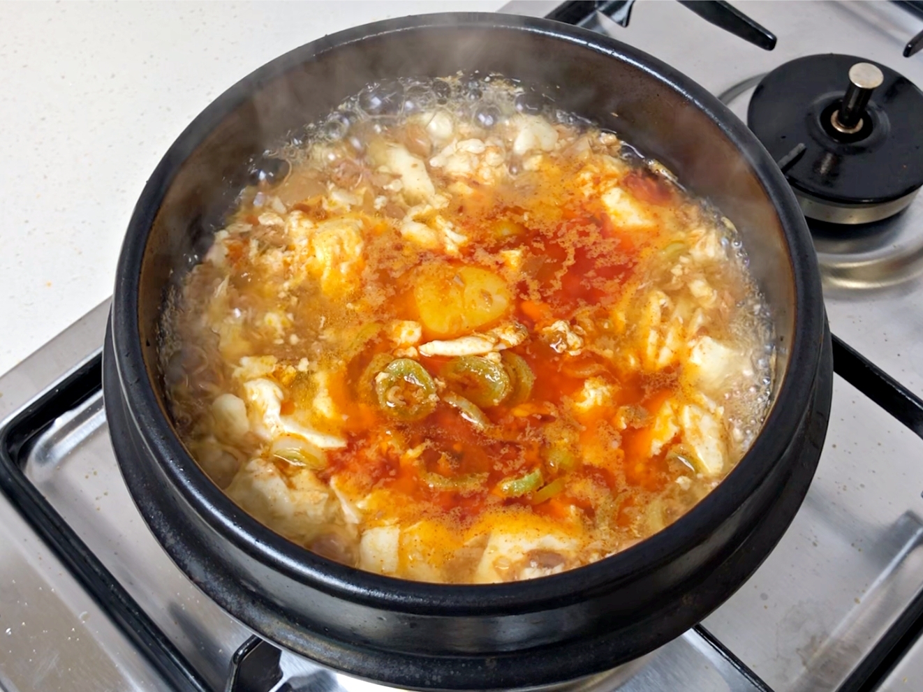 순두부 넣고 한소끔 더 끓여주세요.