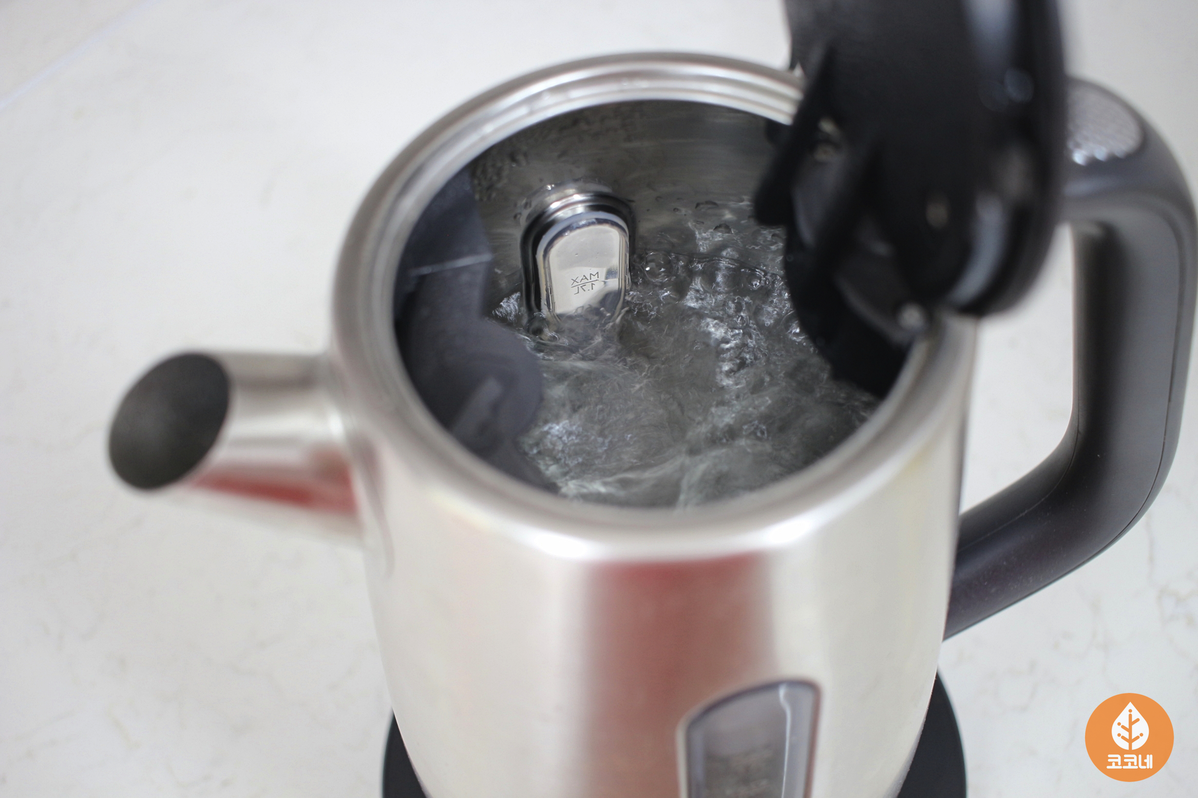 전기포트에 물을 맥스로 채워주세요.