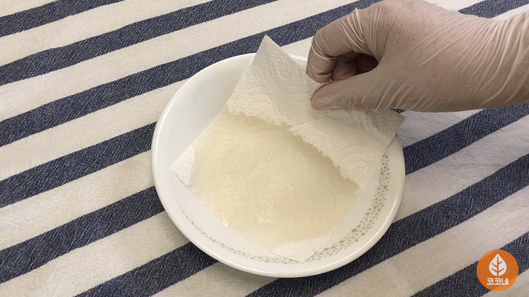 키친타월이 식초를 충분히 머금도록 해주세요.