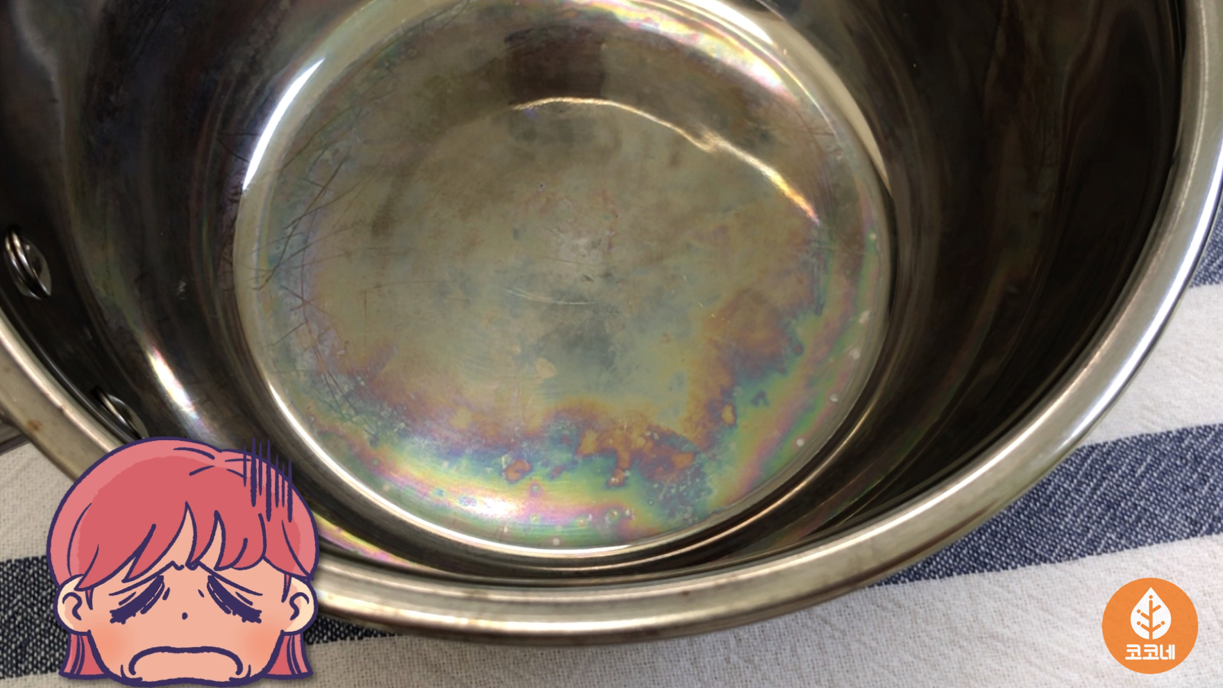 스텐냄비 무지개얼룩이 1분만에 사라진 이유.