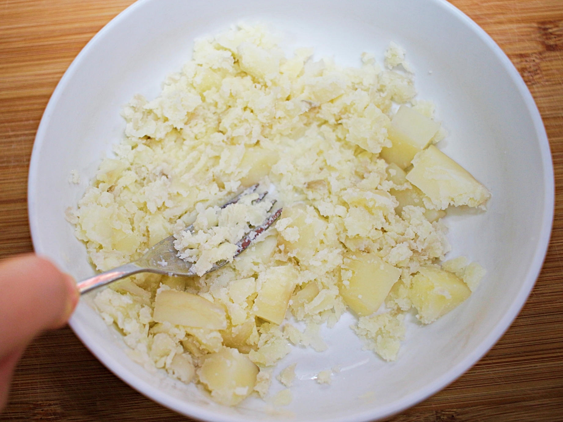 감자를 익혀서 따뜻할 때 포슬포슬하게 으깨주세요.