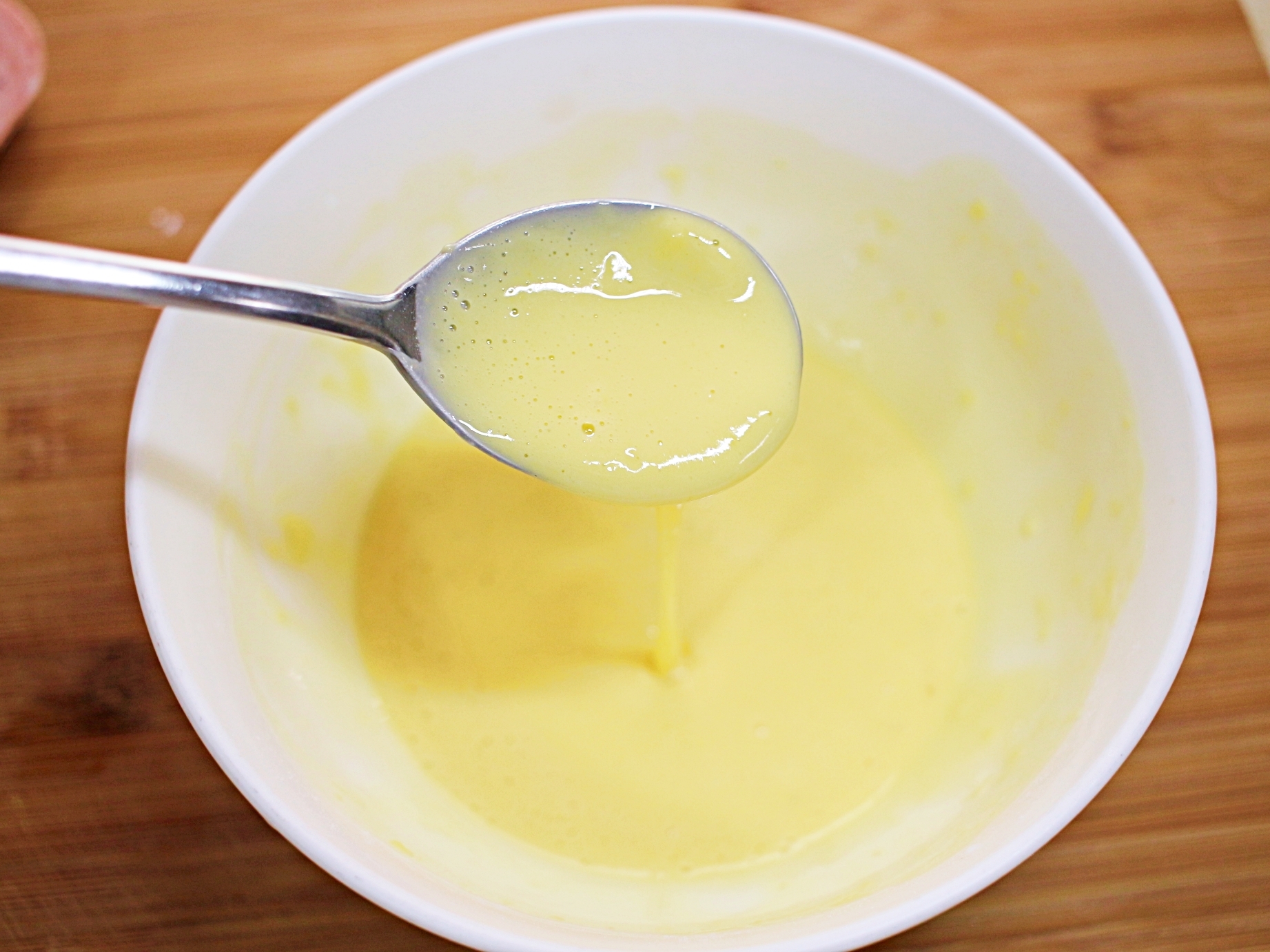 밀가루 3큰술에 계란 1개, 물을 넣고 반죽을 만들어요.