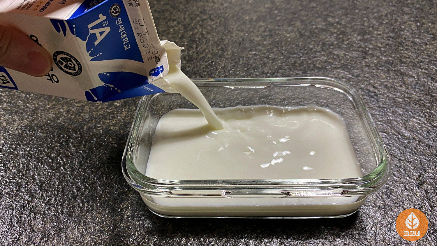 용기에 우유(첨가물 없는 흰우유)를 붓고