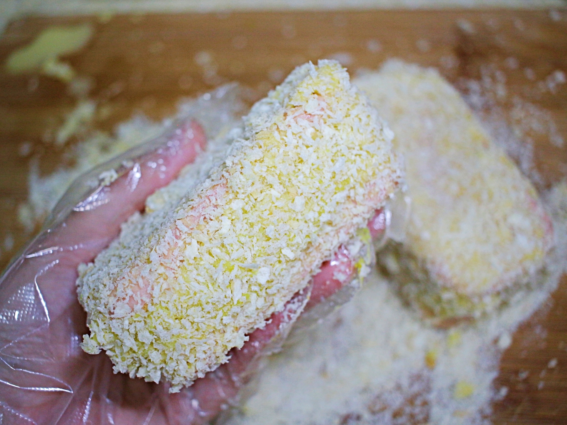 준비한 고로케에 반죽 옷을 입히고