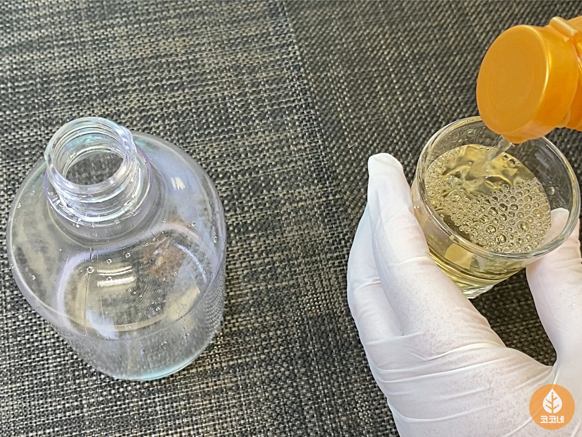 식초와 물을 1:1 비율로 섞어서 식초수를 만들고요.