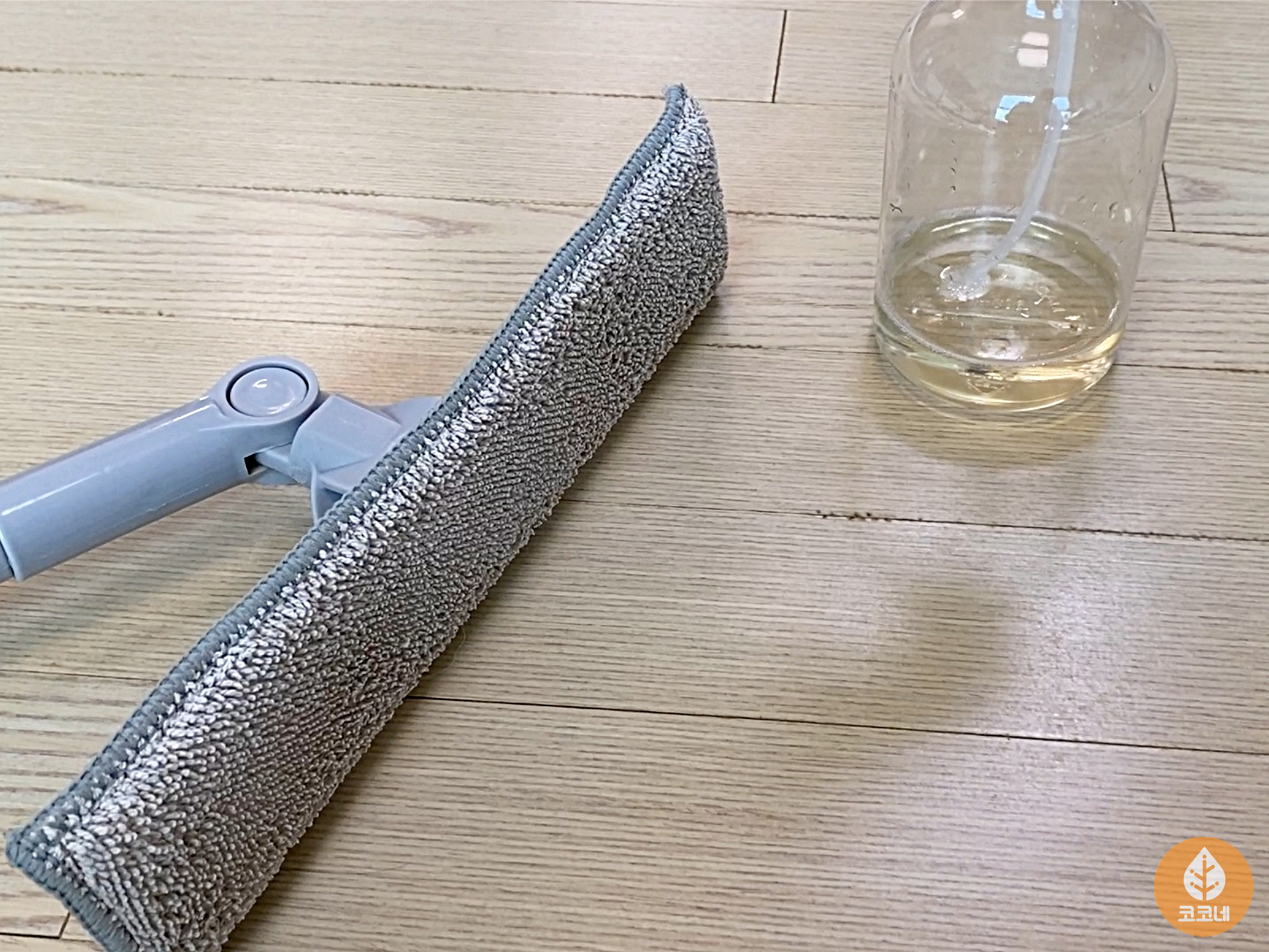 걸레에 식초수를 뿌려서 닦아주시면 돼요.