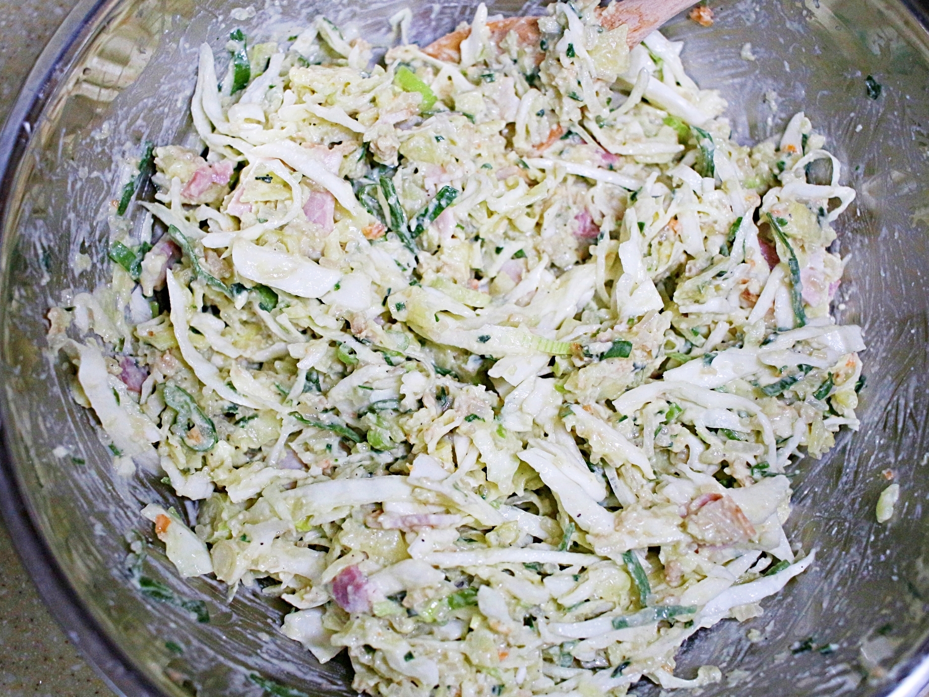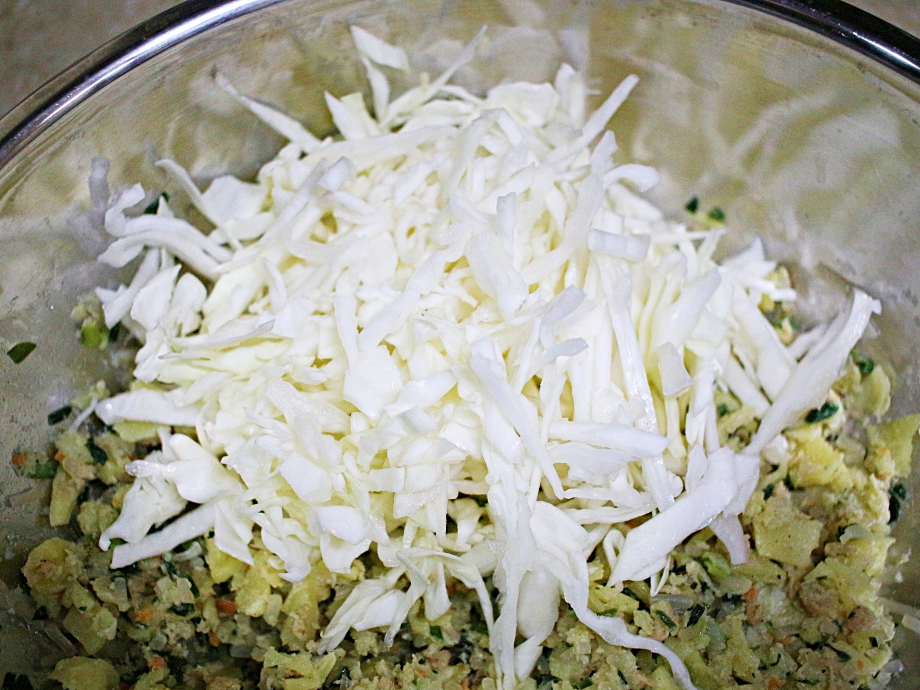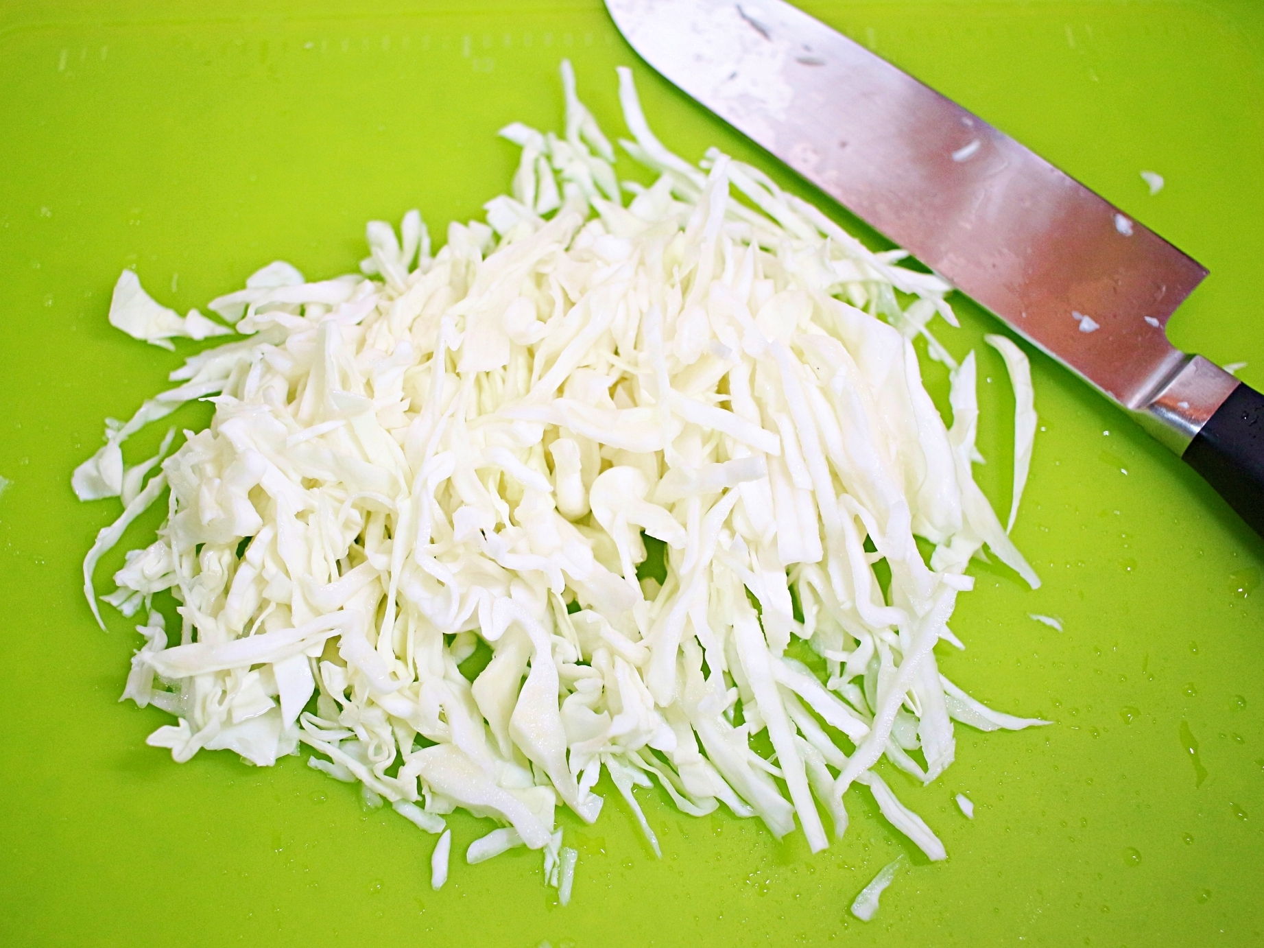 양배추를 깨끗하게 씻어서 채 썰어주세요.