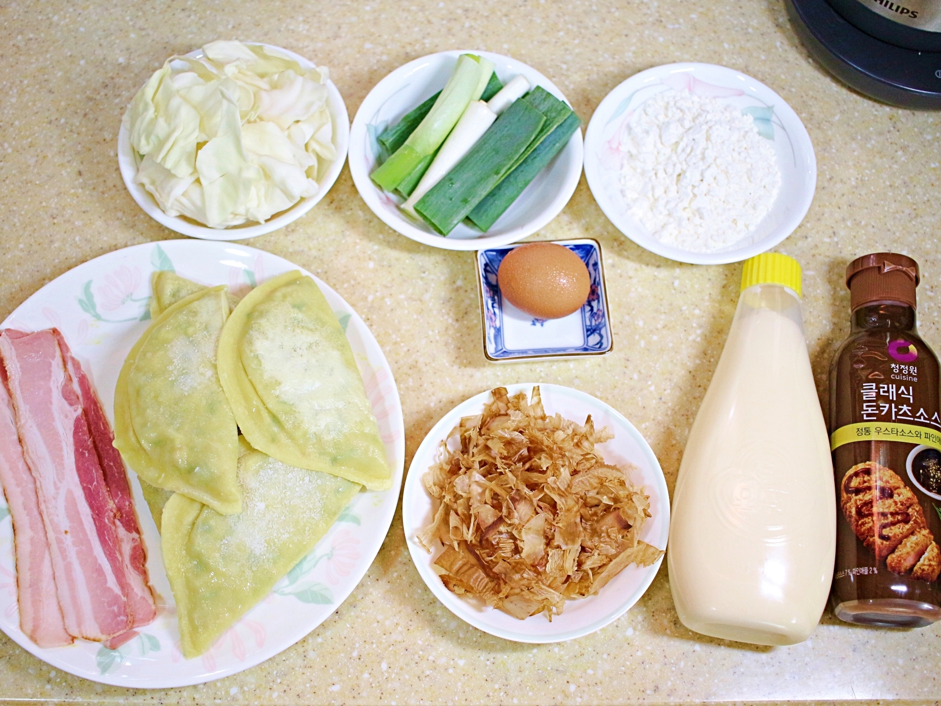 가쓰오부시, 마요네즈, 돈까스소스 그리고 냉동만두!