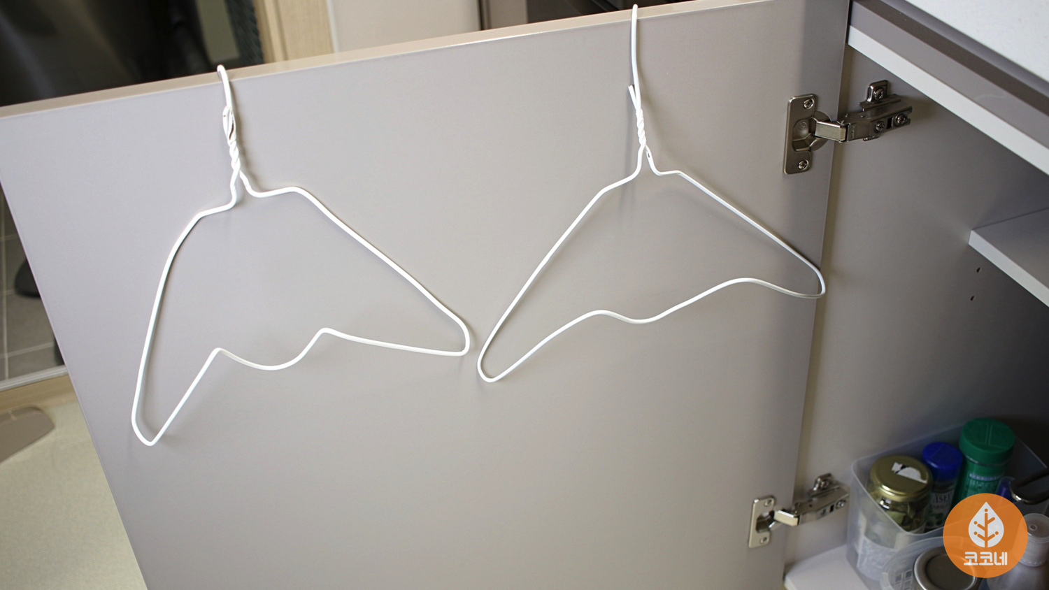 싱크대에 세탁소옷걸이를 거는 순간