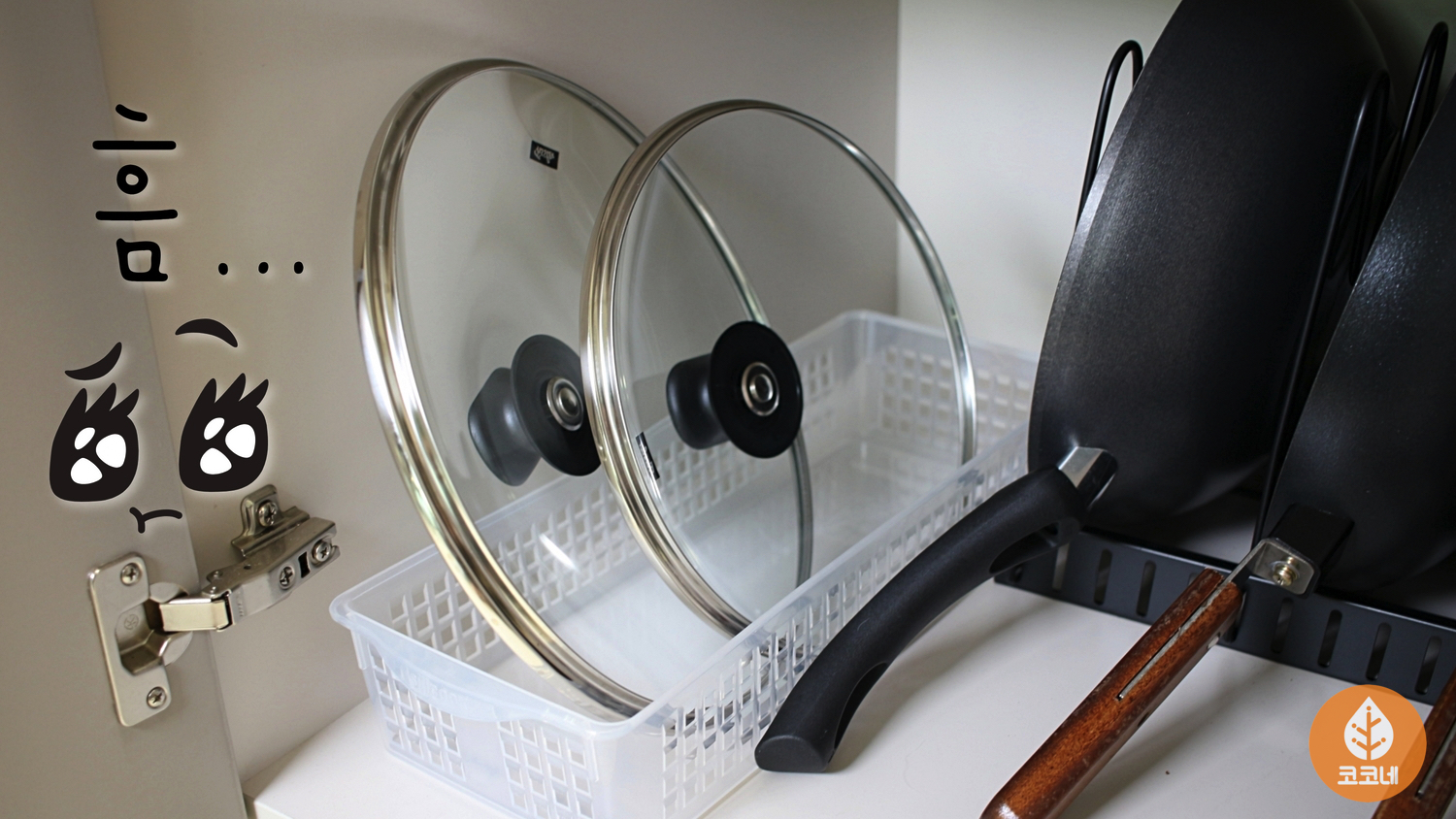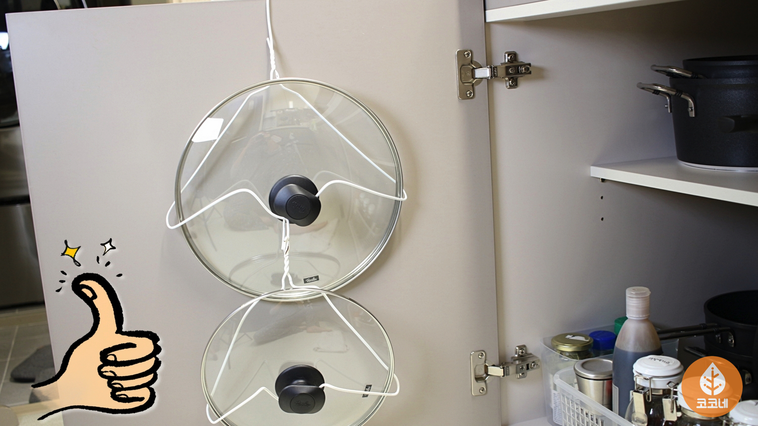 냄비뚜껑도 깔끔하게 정리하고,