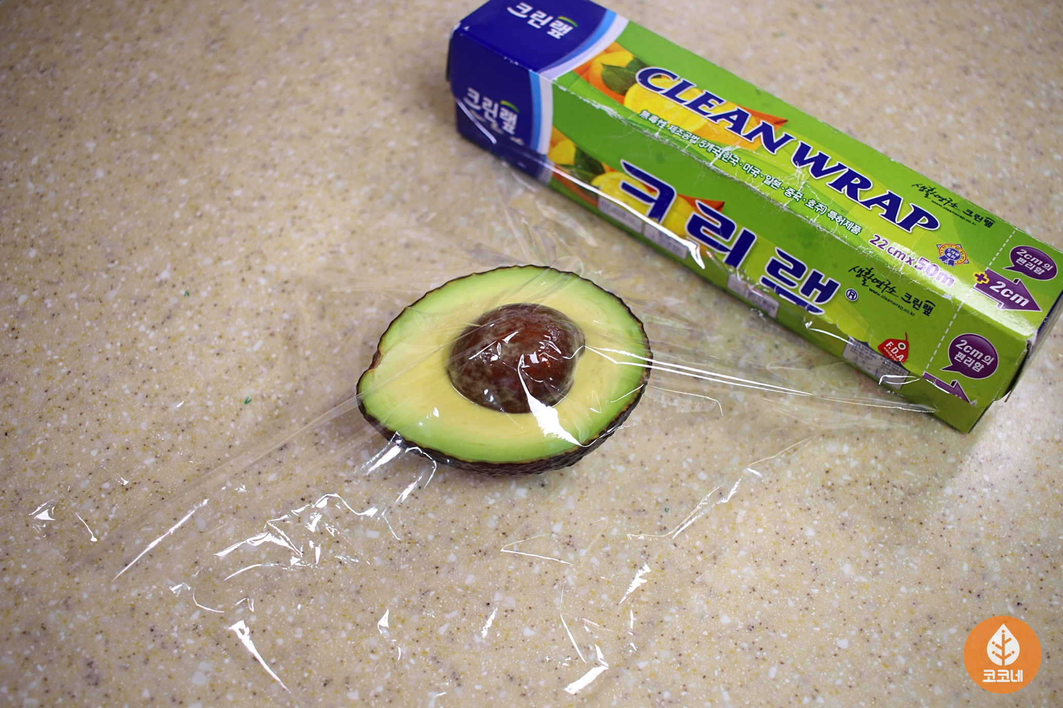 레몬즙 뿌리고 랩으로 감싼 아보카도를