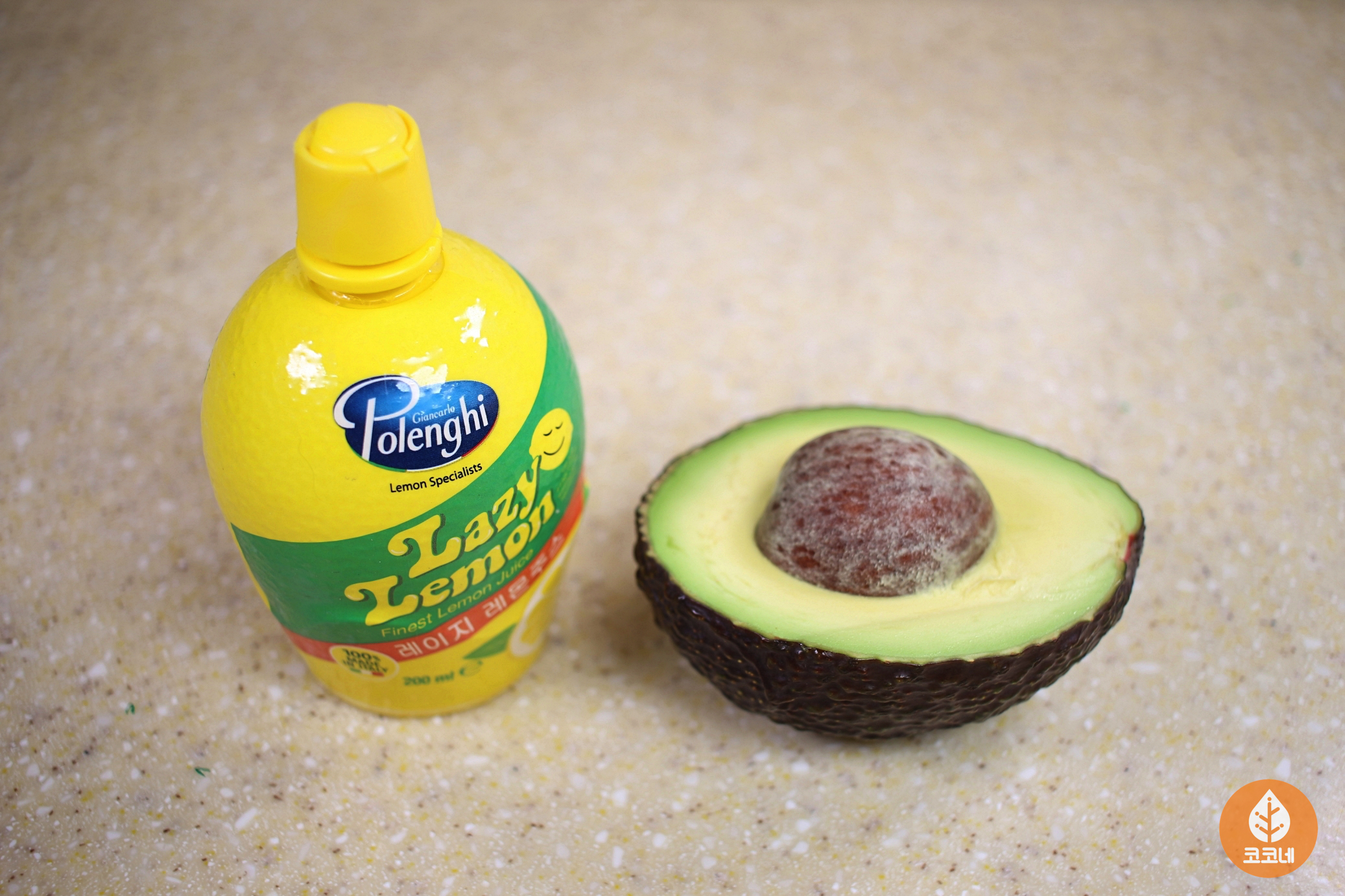 아보카도 절단면에 레몬즙을 2~3방울 떨어트리고
