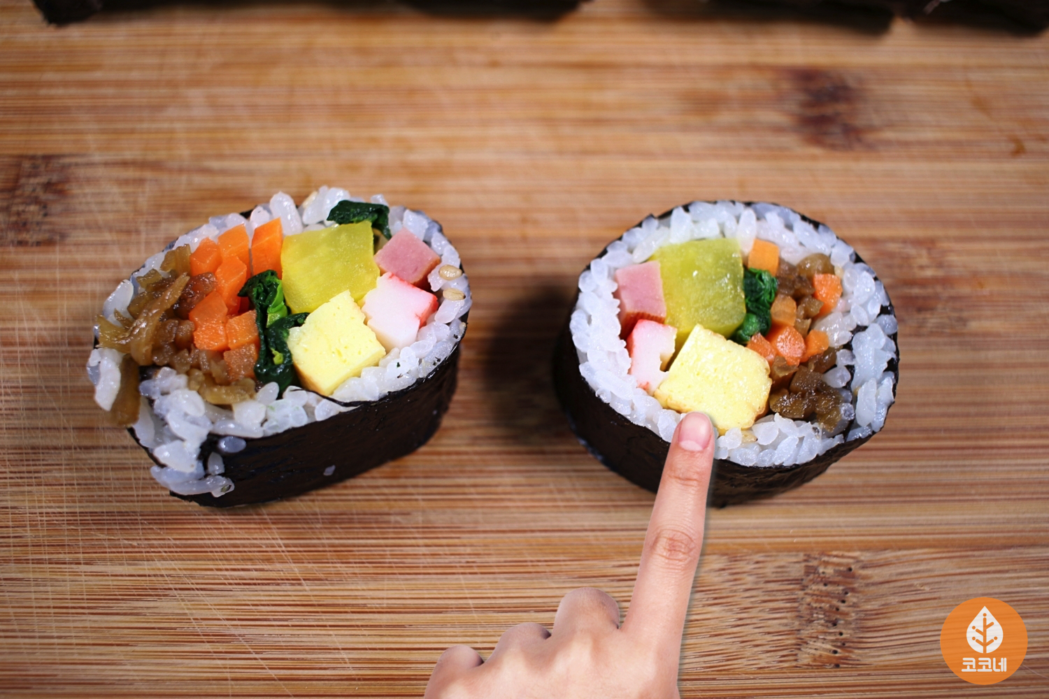 김밥 단면을 깔끔하게 커팅해서