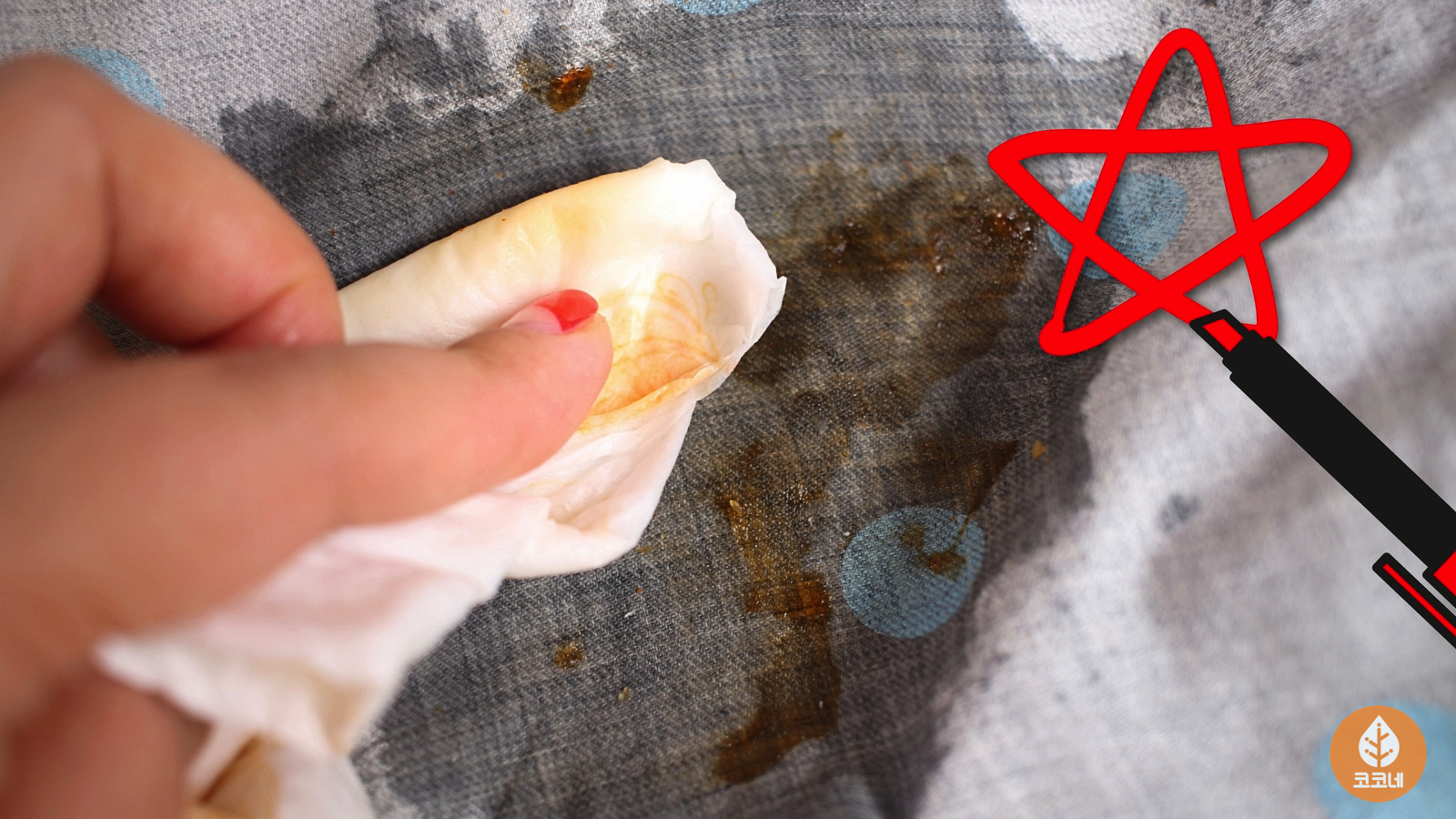 소스 얼룩이 키친타월에 스며들도록 해주세요.