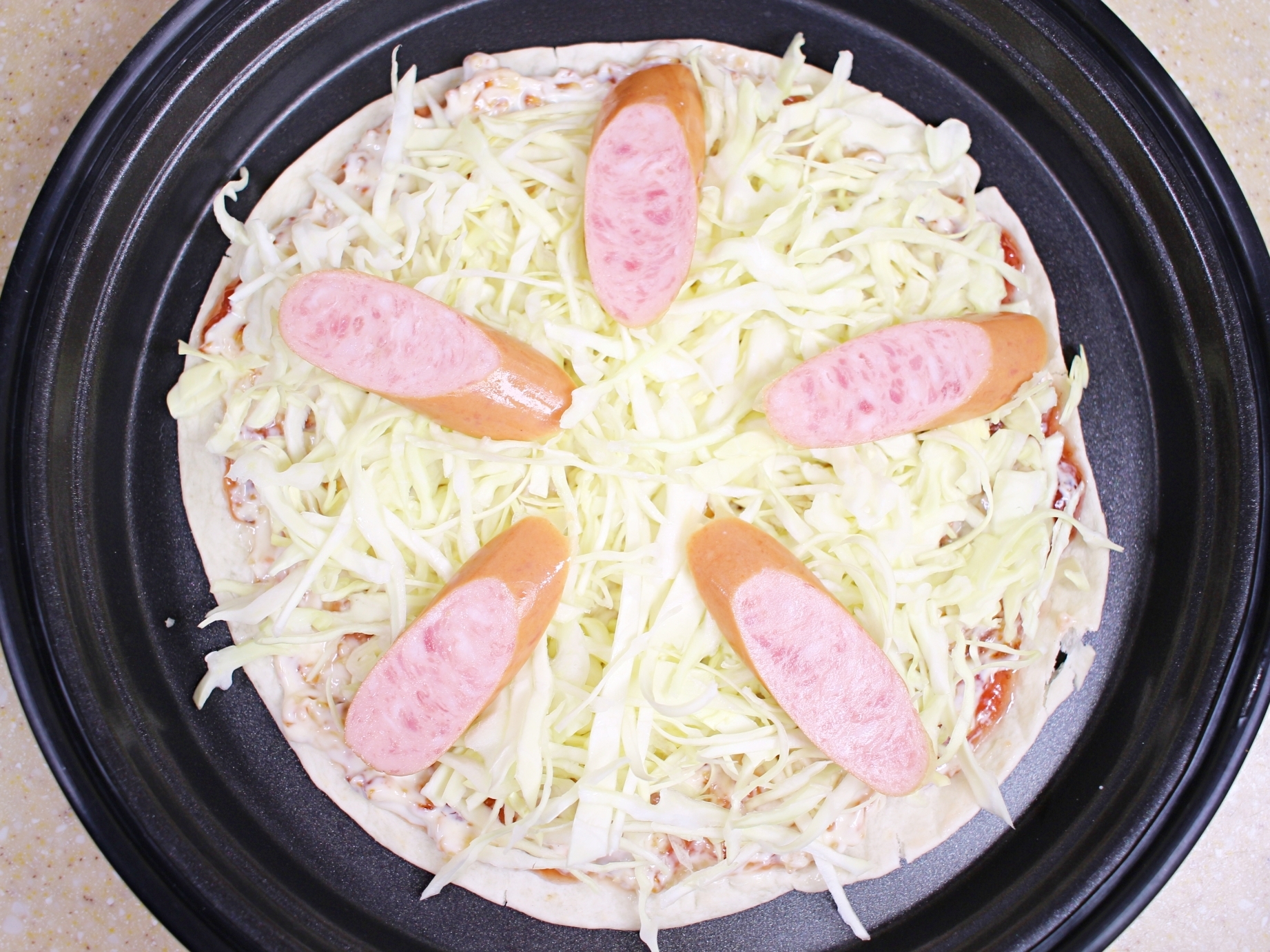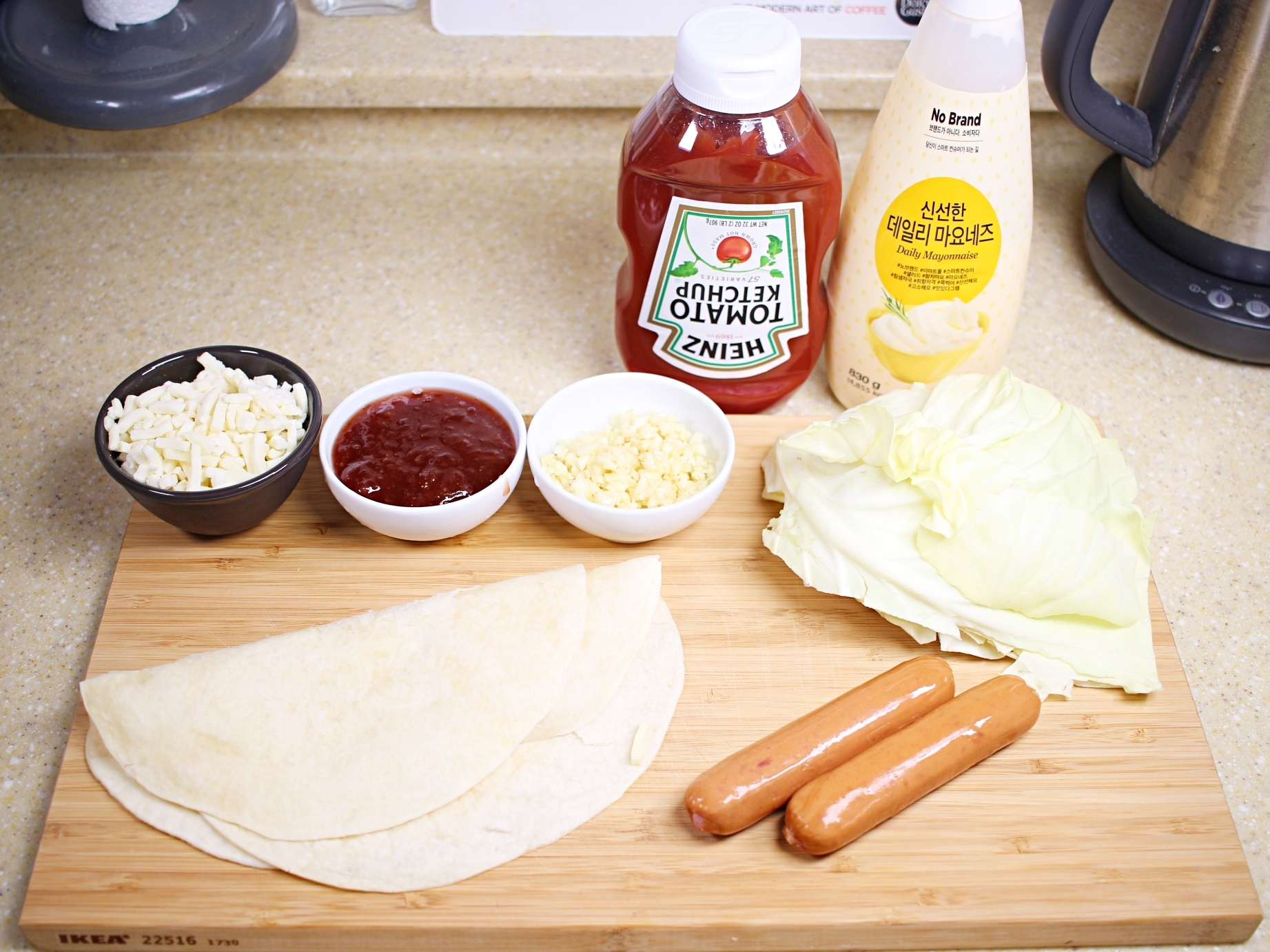 양배추, 또띠아, 소시지, 모짜렐라치즈,