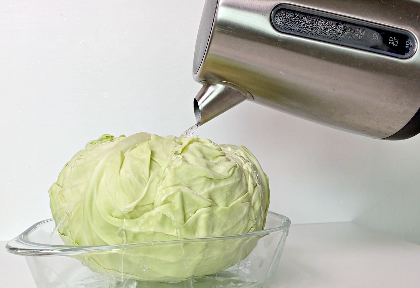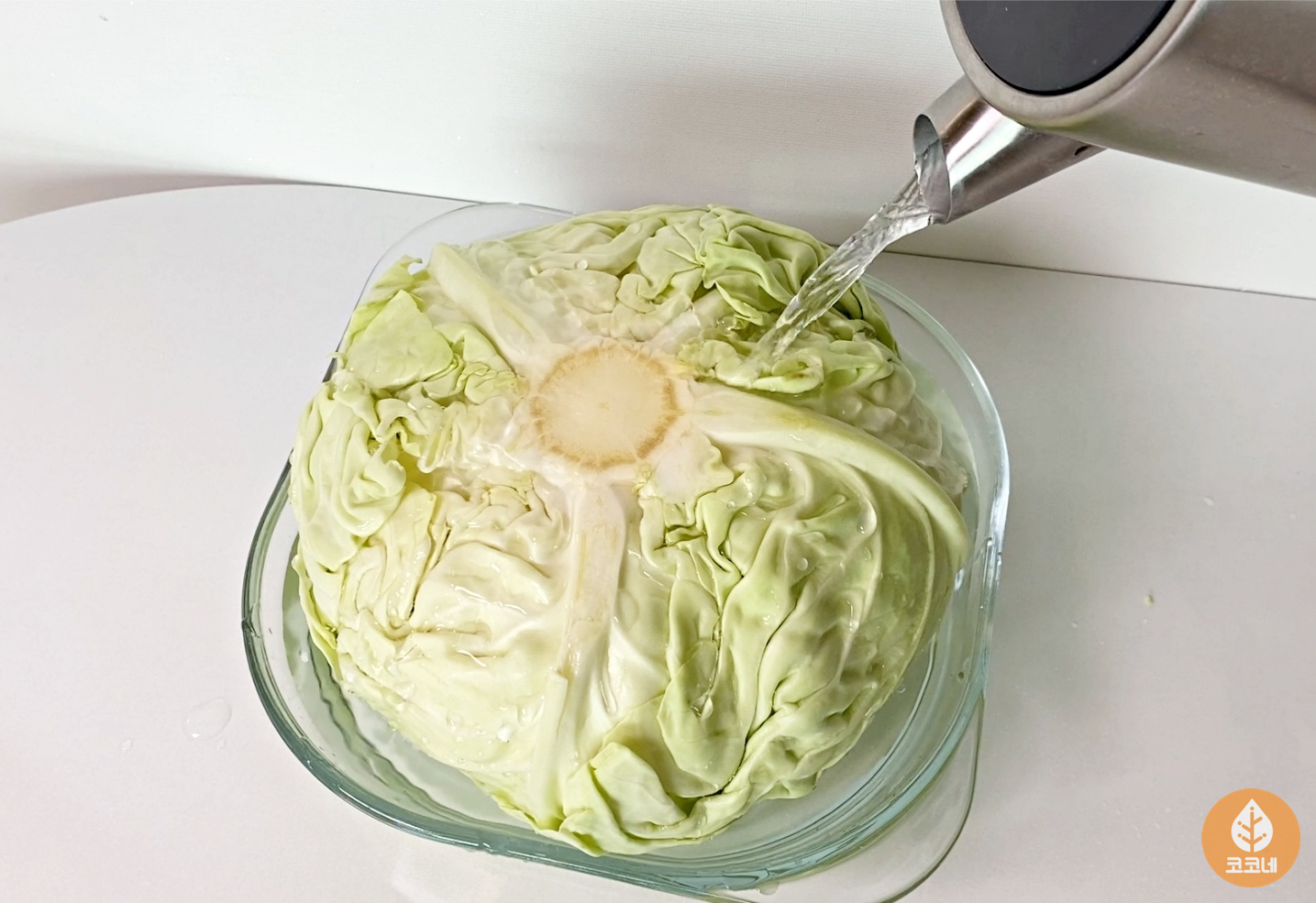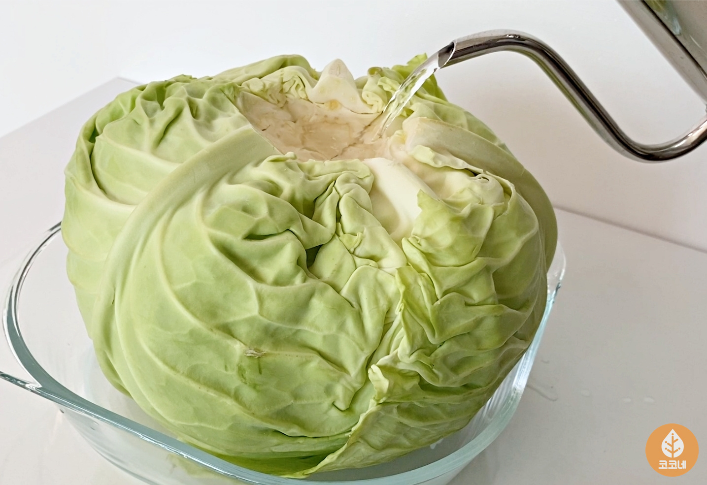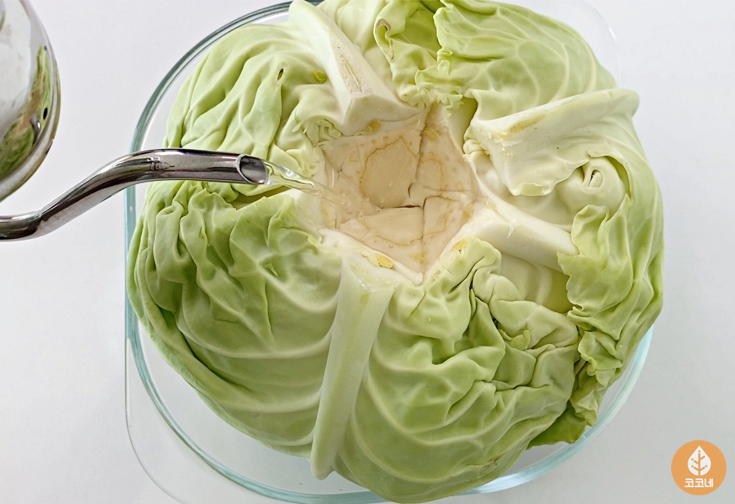 따뜻한 물이 양배추잎에 충분히 스며들도록