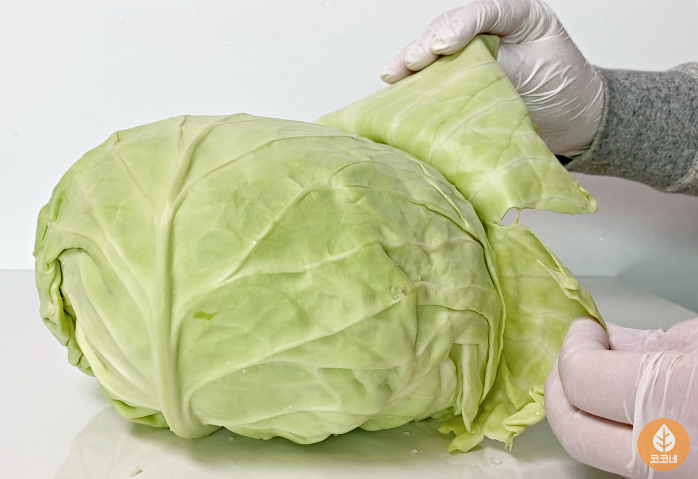 양배추잎을 그대로 떼어내니까