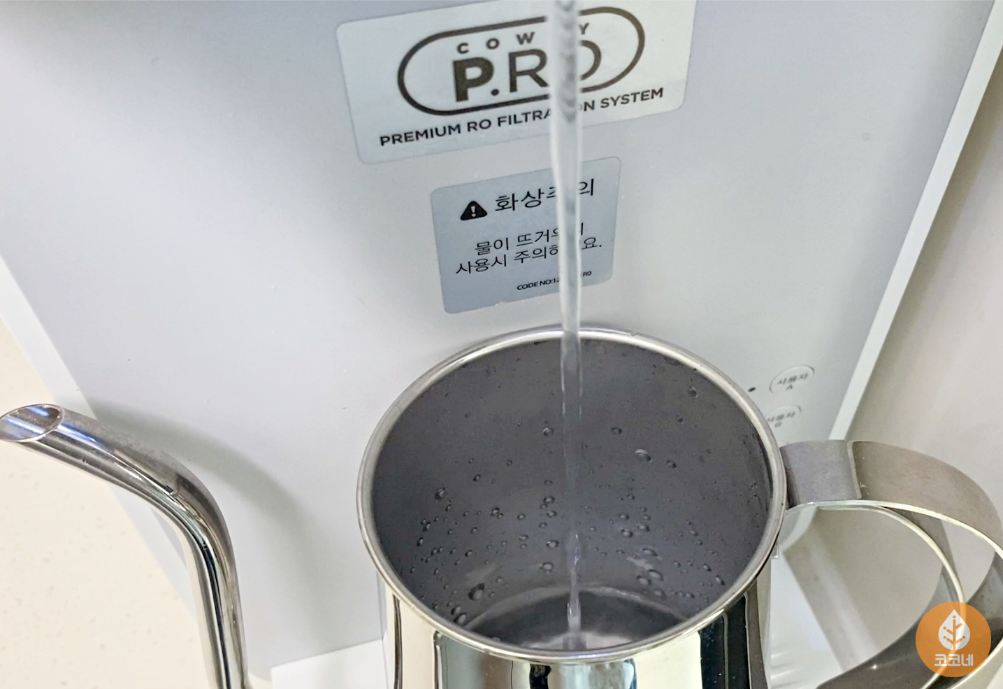 이 부분에 따뜻한 물을 천천히 부어주세요.