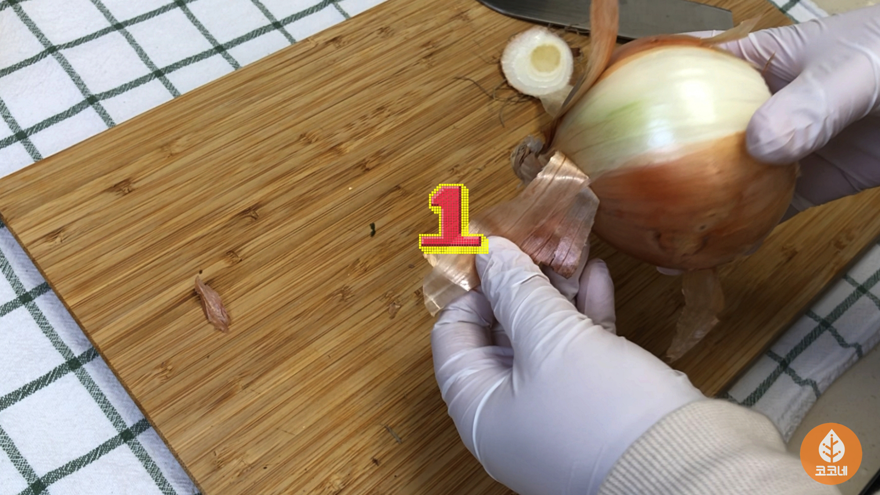 양파 껍질을 까는 순서를 바꿔야 해요.