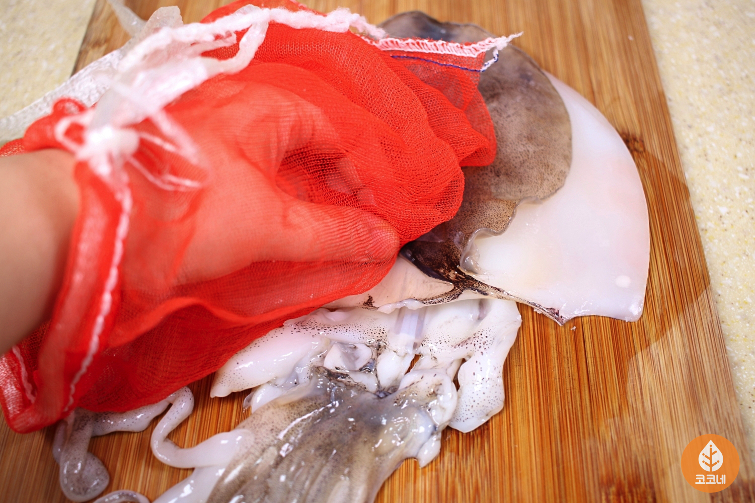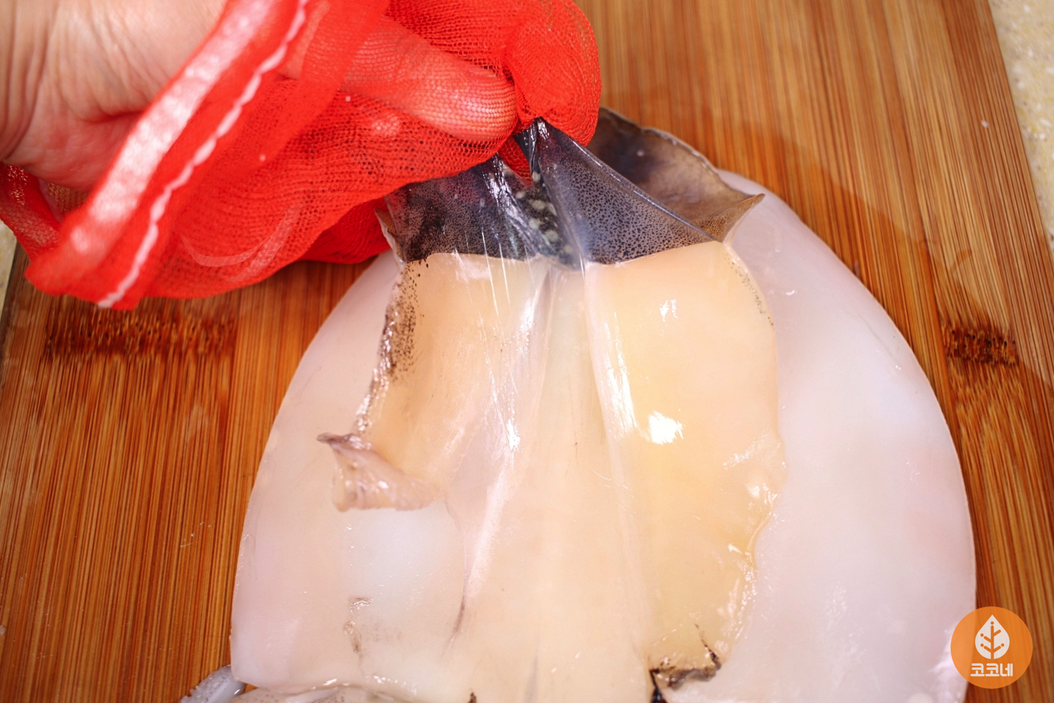 미끄러워서 껍질을 벗겨내기 쉽지 않은 오징어도