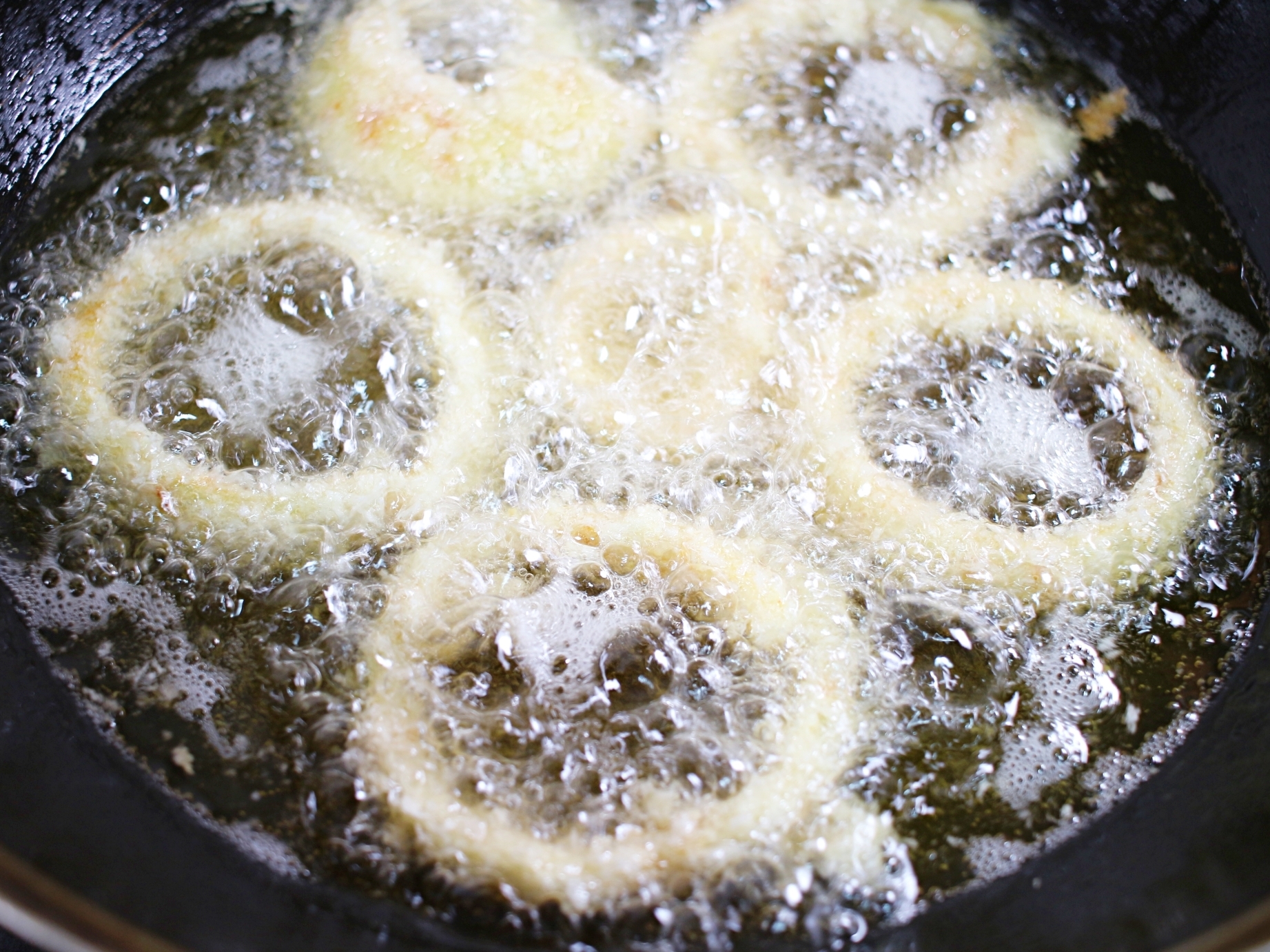 양파의 아린 맛도 줄고 튀김옷이 더 잘 붙어요.