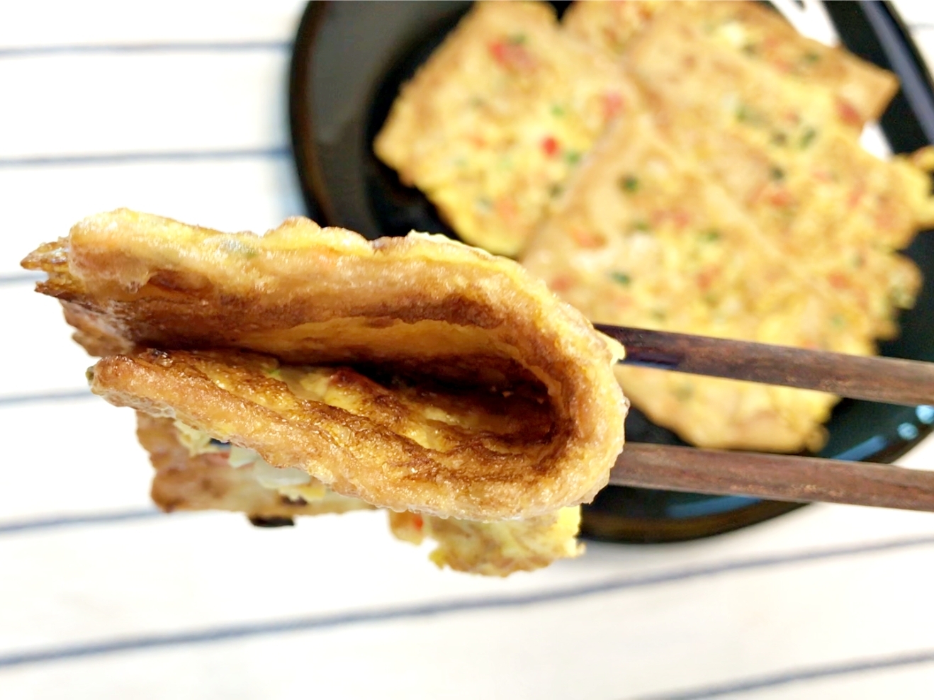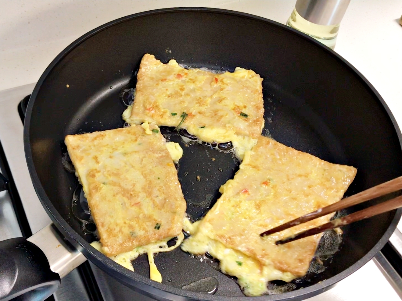 그래야 달걀물이 잘 달라붙고 부칠 때 모양도 예쁘게 유지돼요.