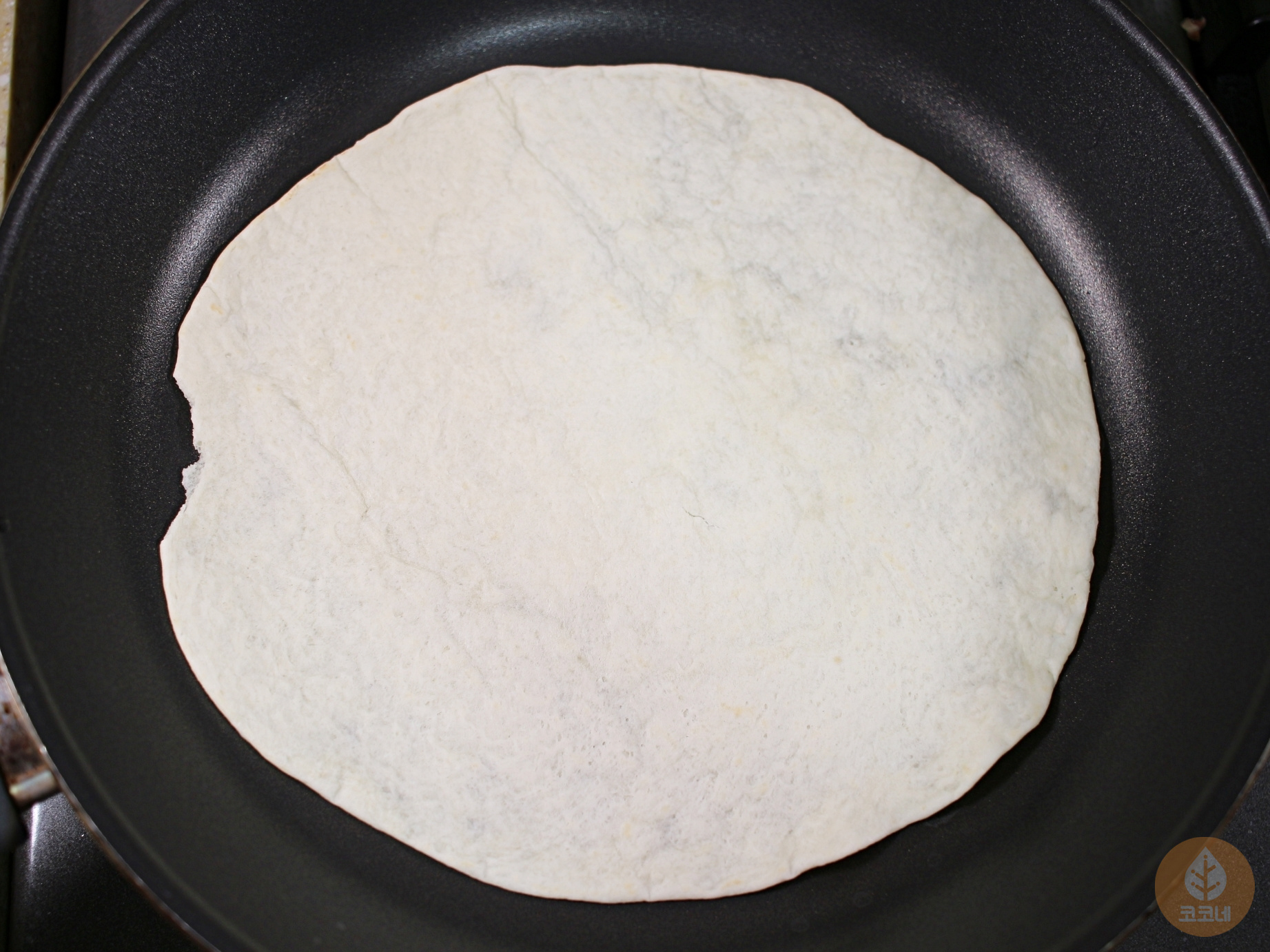 기름을 두르지 않은 후라이팬에 또띠아를 구워요.