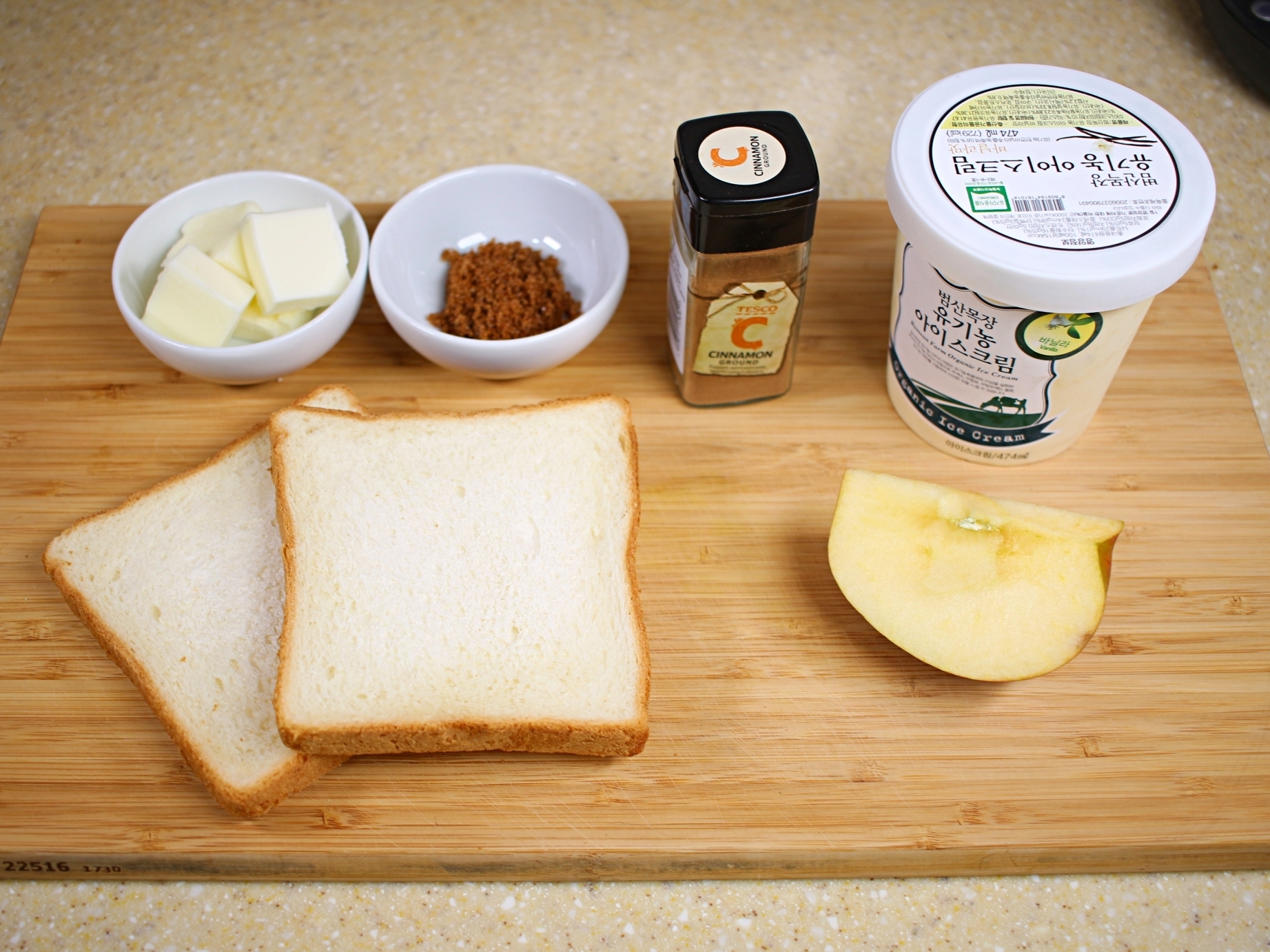 재료는 아이스크림(취향대로~), 식빵, 사과, 버터,