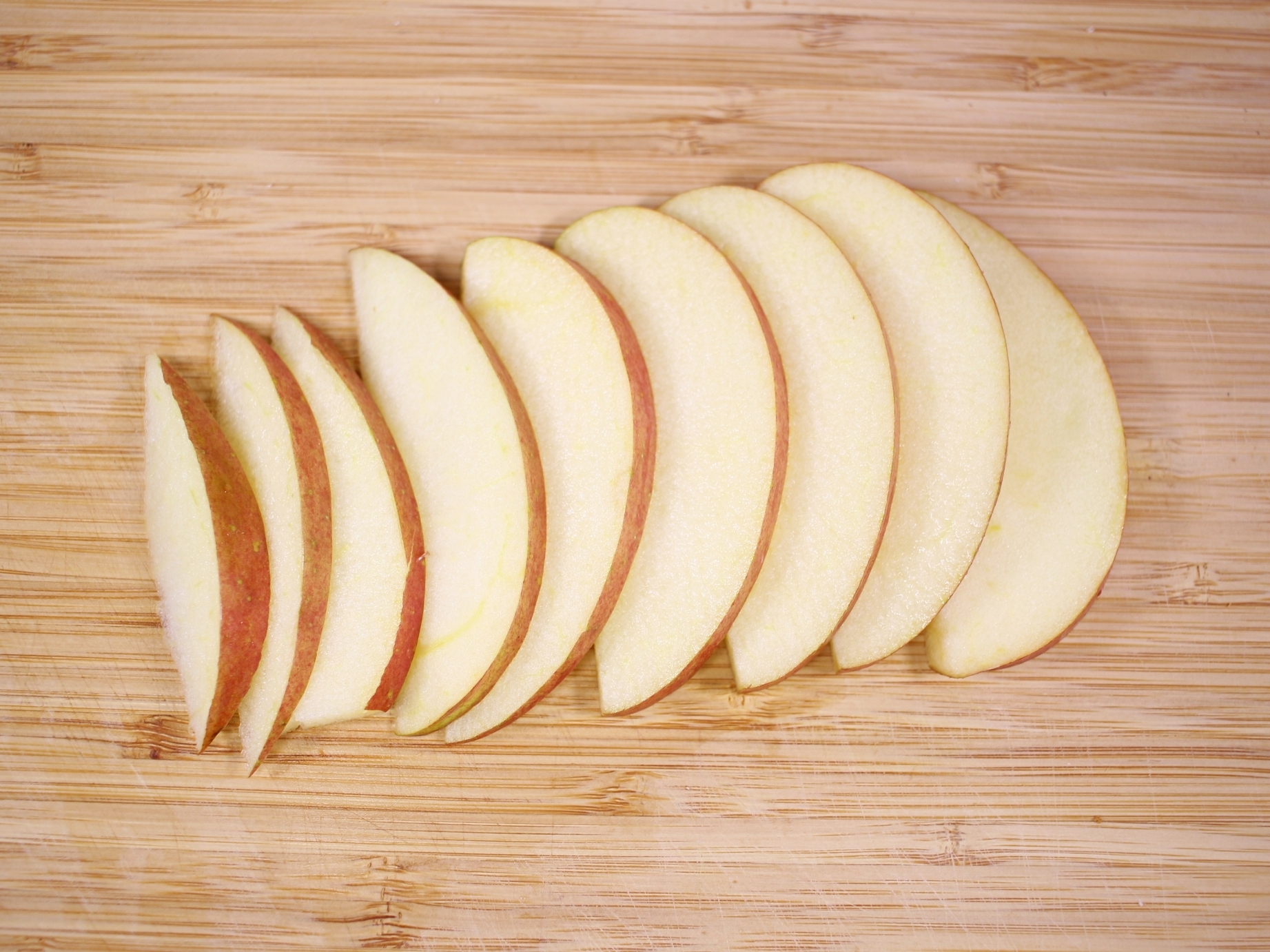 그 위에 설탕 코팅된 사과도 겹쳐서 올려주세요.