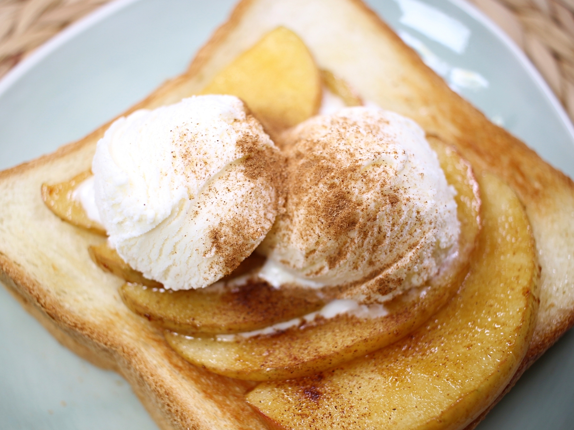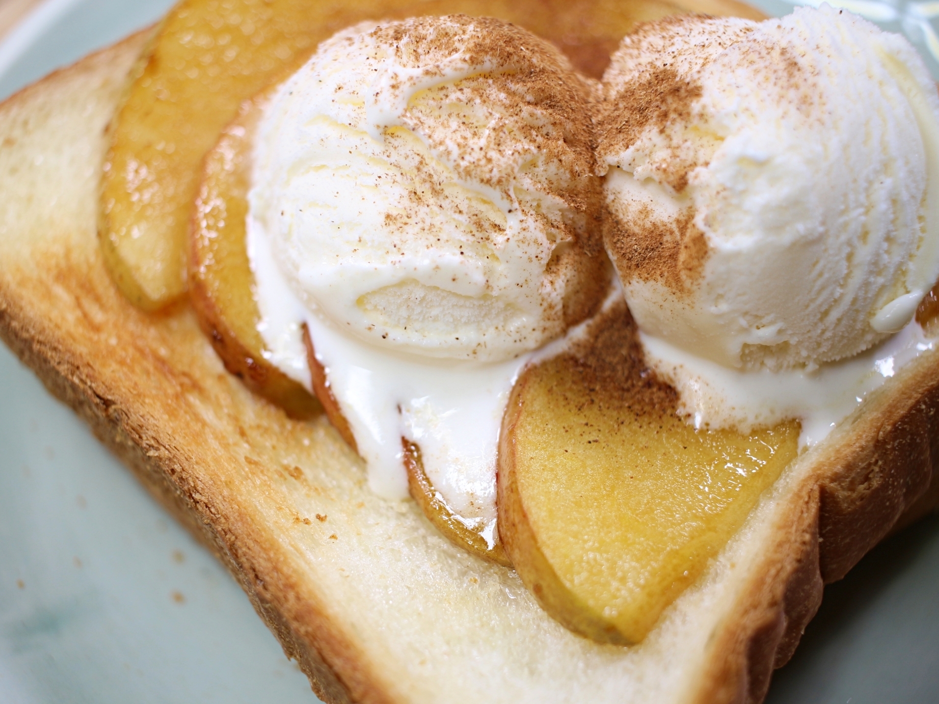 따뜻한 사과와 만나 부드럽게 스며든 아이스크림에