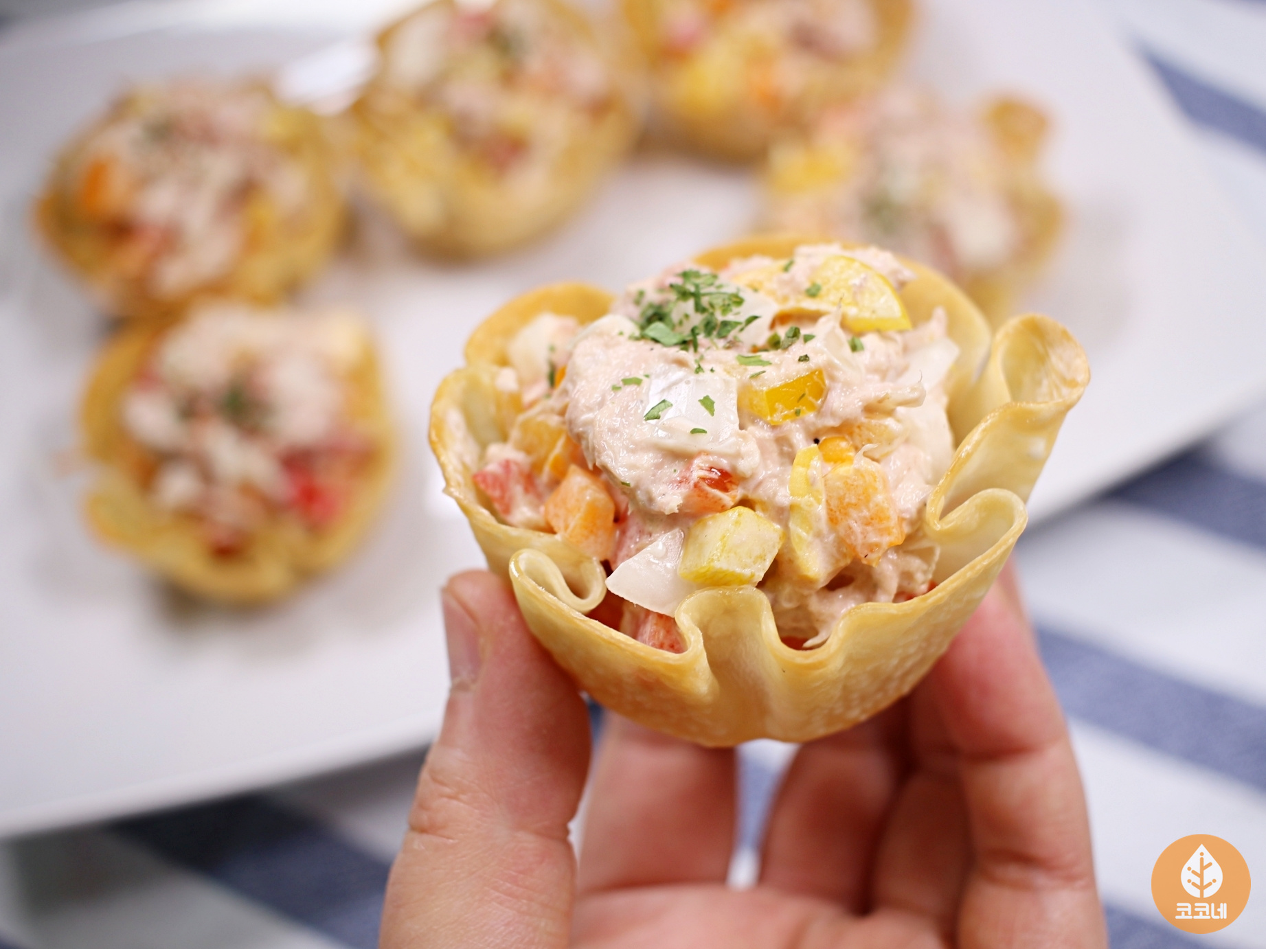 바삭바삭 과자 같은 샐러드 그릇이 완성돼요.